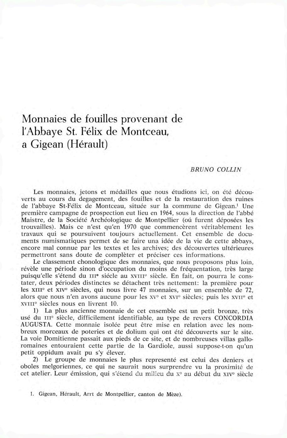 COLLIN, B. Monnaies de [ouilles provenant de l'Abbaye St. Felix de Montceau, a Gigean (Herault) 177