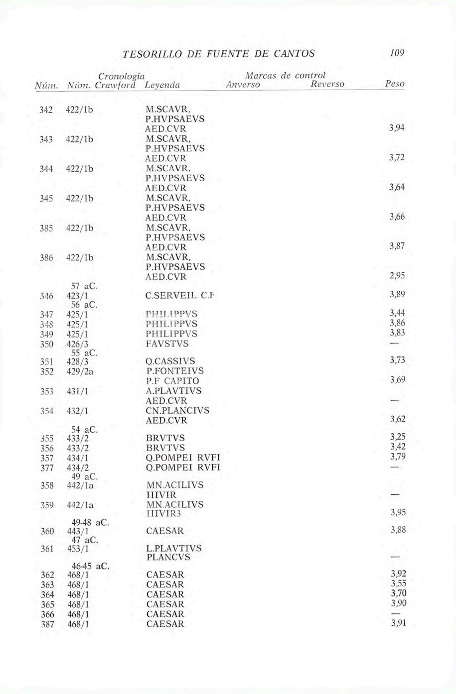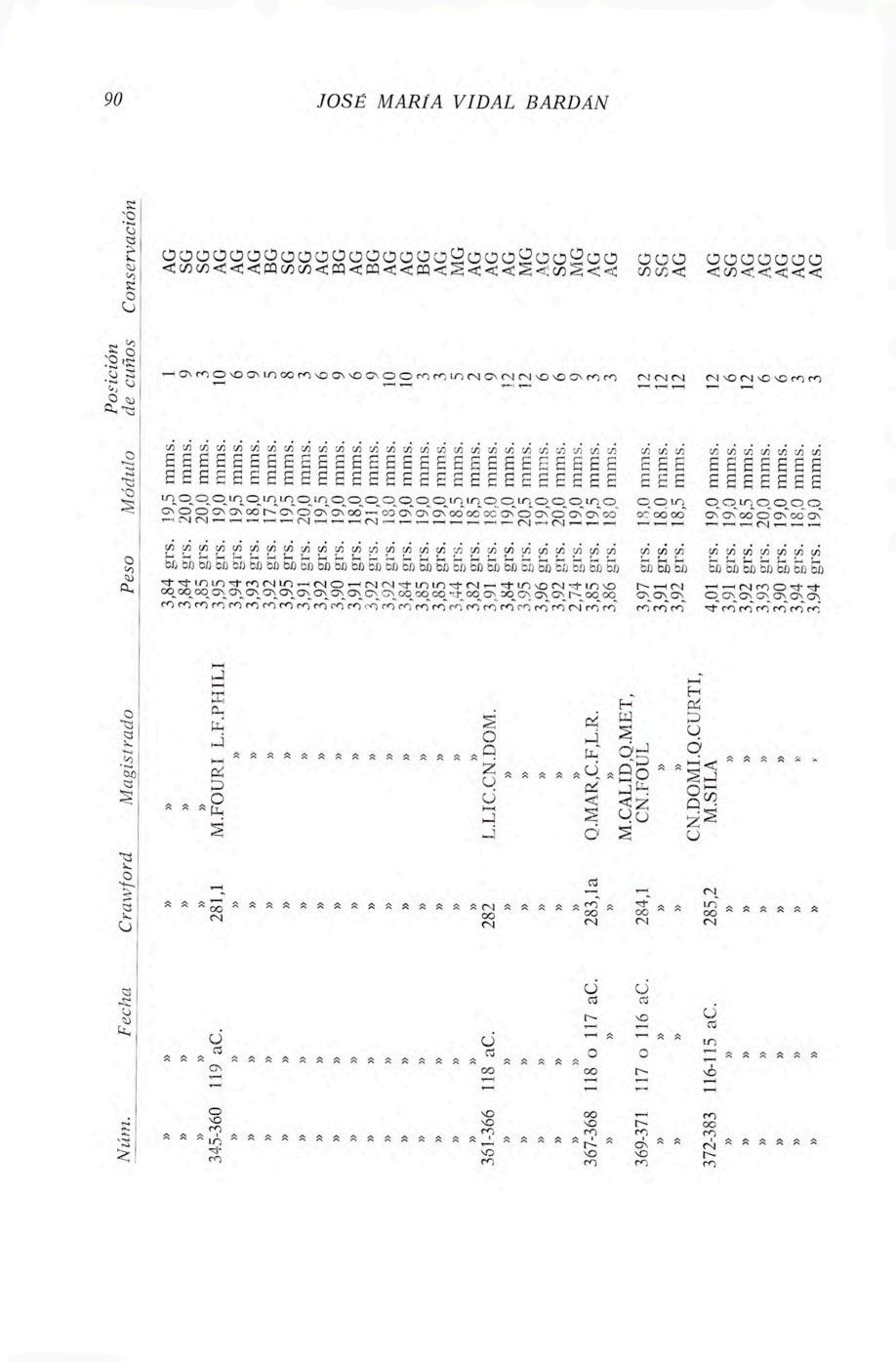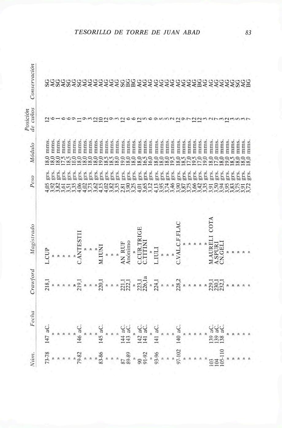 AGUILERA, I. Un tesorillo de denarios indigenas en Trasobares 75 VIDAL BARDAN, J. M,» Tesorillo de denarios romano-republicanos de Torre de Juan Abad (Ciudad Real) en el Museo Arqueologico Nacional. 79
