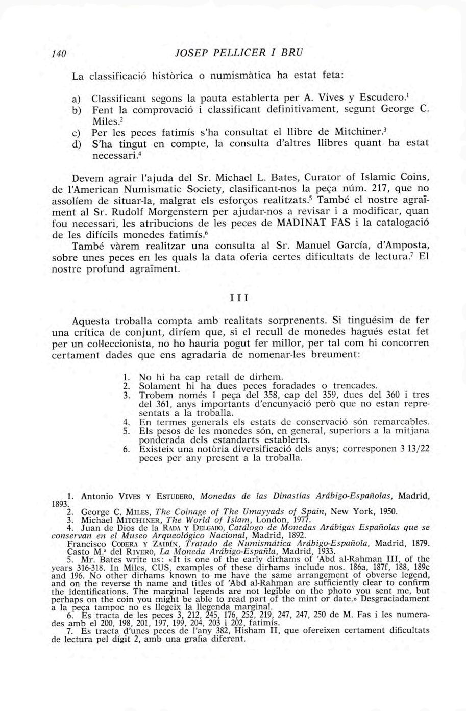 PELLICER, J. Un tresor de dirhems arabs a S. C. - I. 139