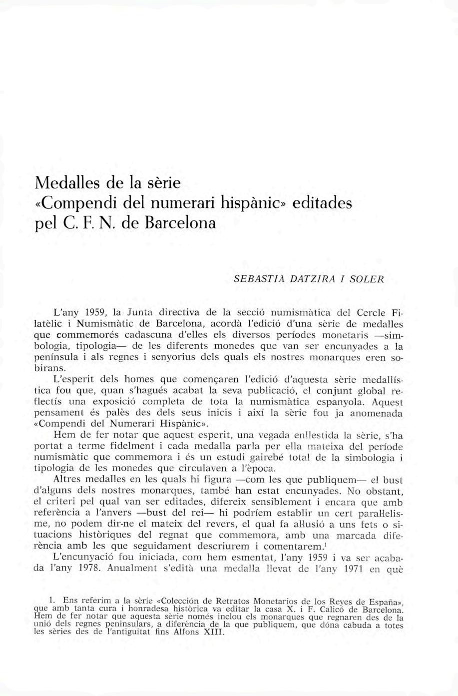 DATZIRA, S. Medalles de la serie Compendi del Numerari Hispanic editades pel Cercle Filatelic i Numismatic de Barcelona 239
