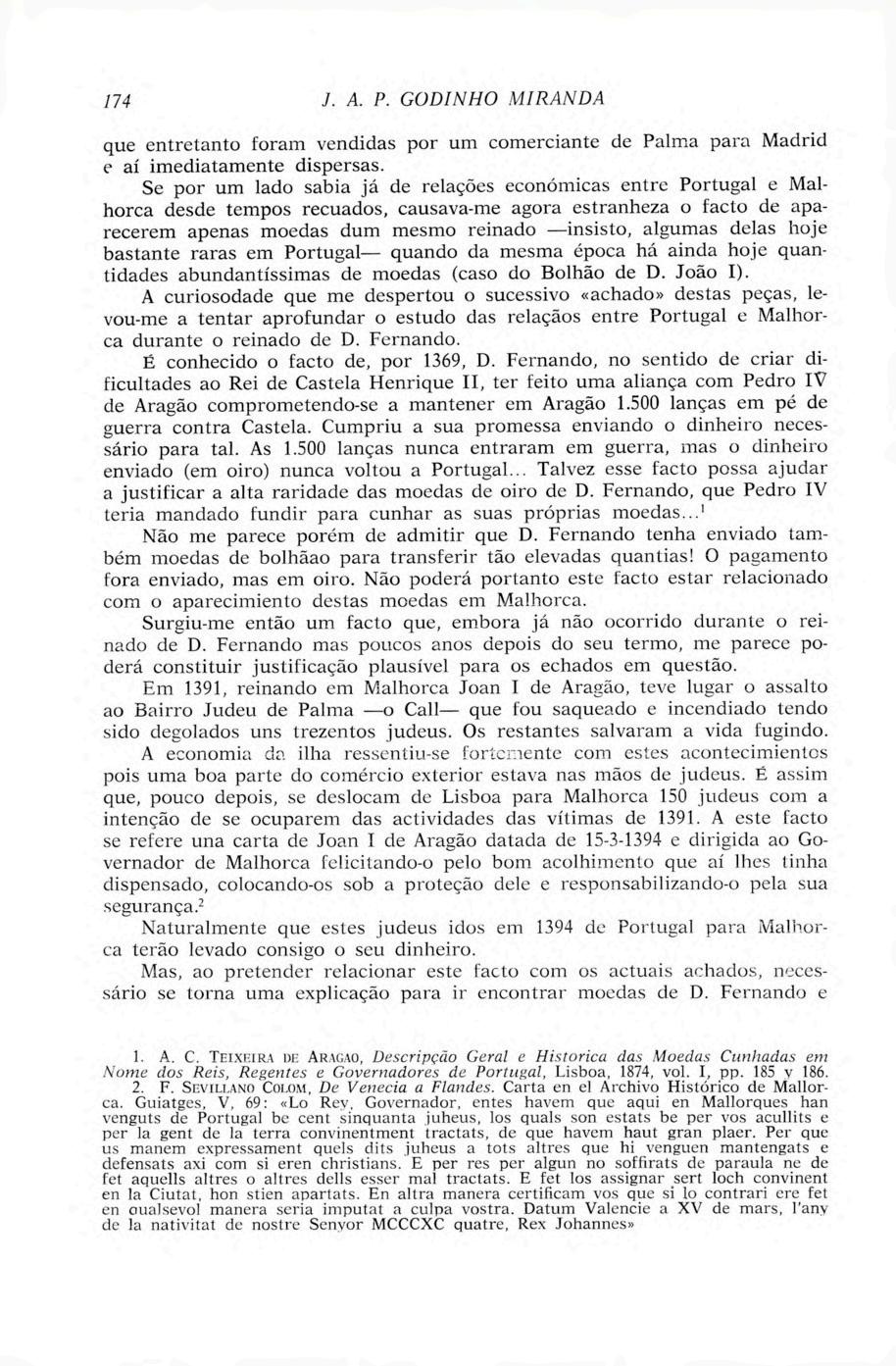 GODHINO MIRANDA, J. A. P. Moedas de D. Fernando I de Portugal (13671383) encontradas en Malhorca 173