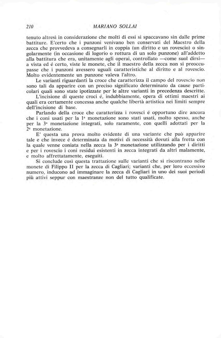 SOLLAI, M. Varianti nelle monete coniate nella zecca di Cagliari durante il regno di Filippo II, re di Spagna. 201