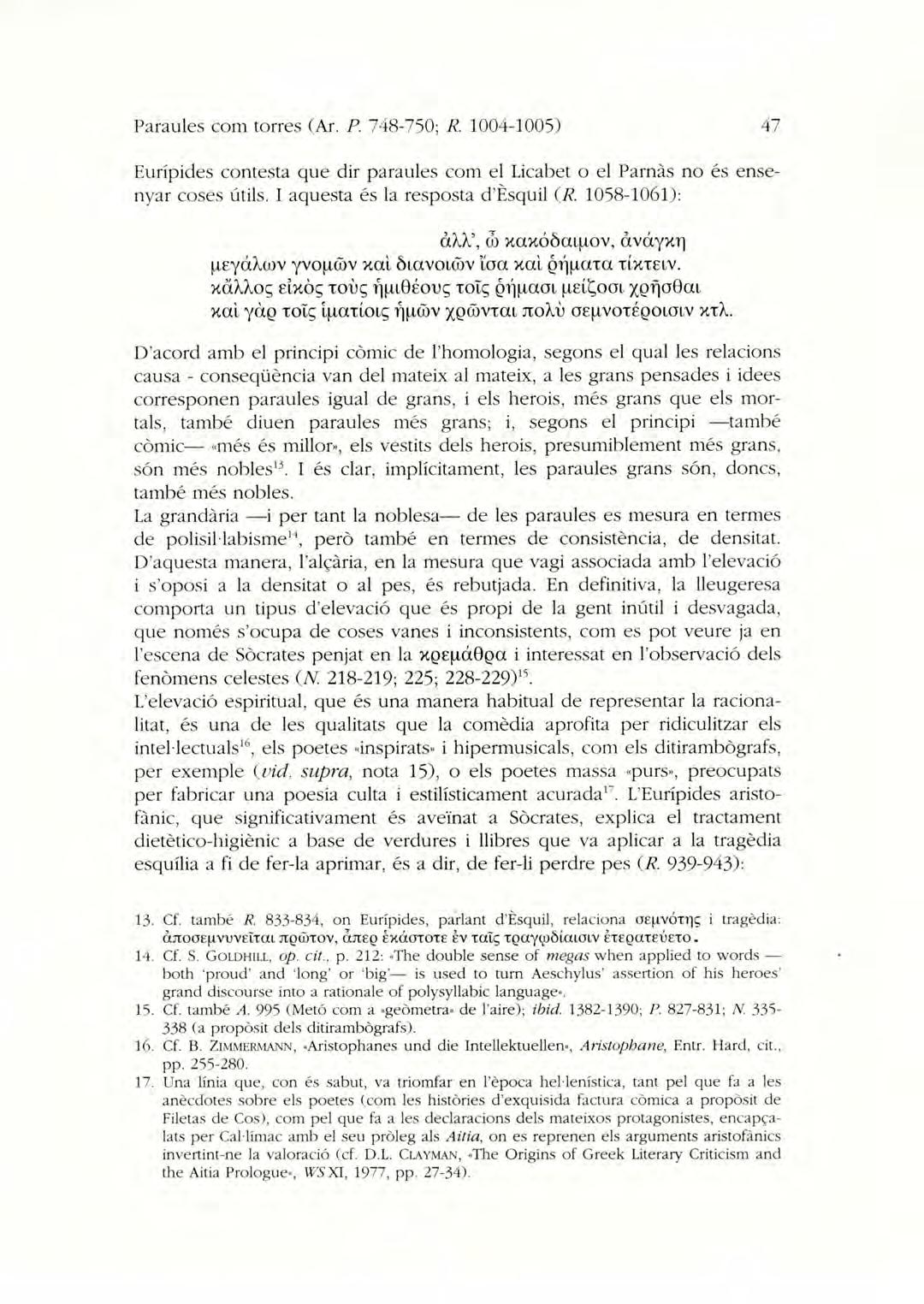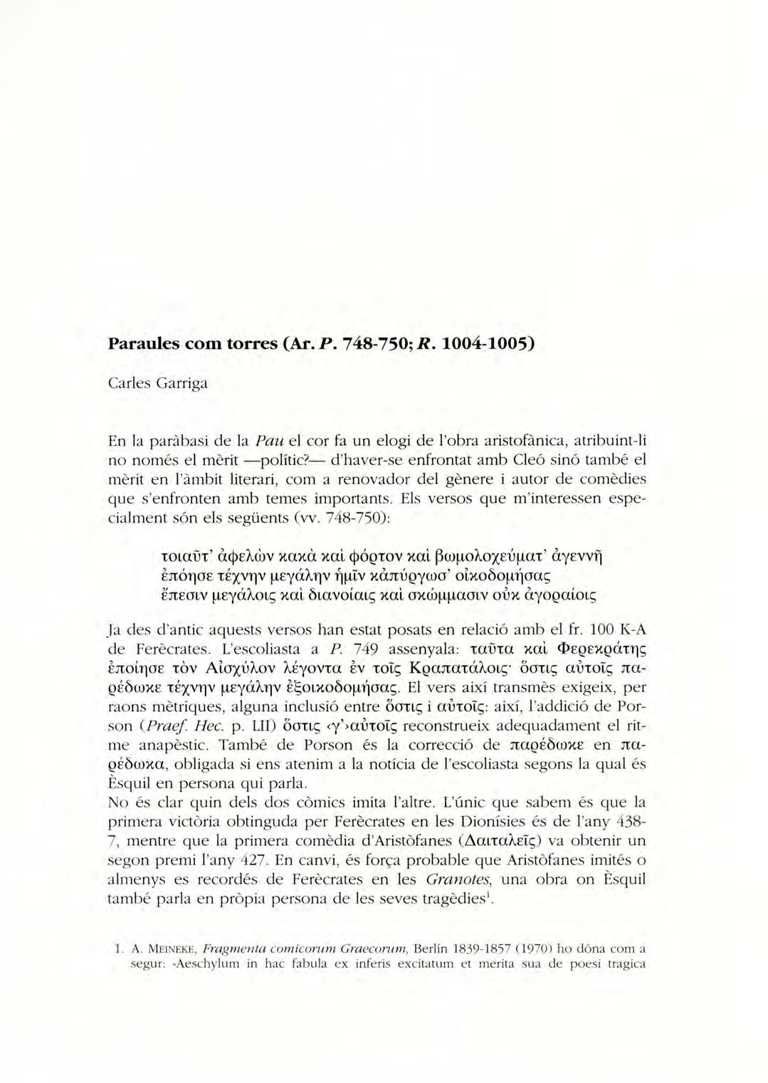 2. Coin va inostrar Halliwell fa un temps: S. HALLIWELL, Ancient interpretations of ovoµaatii xwµ(0bew in Aristophanes,,, CQ 34/1, 1984,pp. 83-8.; cf. tambe la meva discussi6 a Dionysisnr and Comedy, cap. 1.