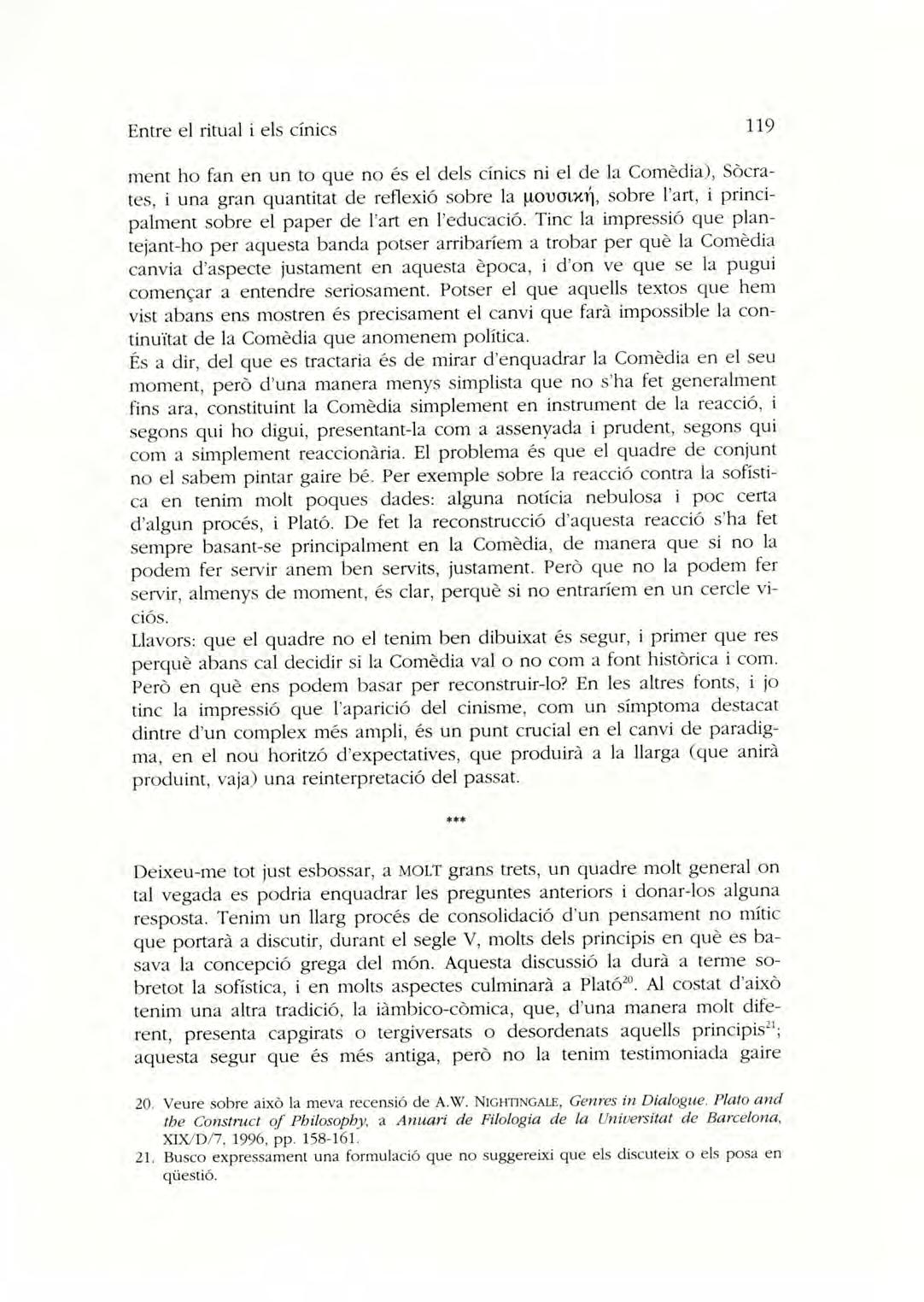 20. Veure sohre aixb la meva recensio de A.W. NIGHTINGALE, Genres in Dialogue. Plato and the Construct of Philosophy, a Anuari de Filologia de la Unieersitat de Barcelona, XIX/D/7, 1996, pp. 158-161.