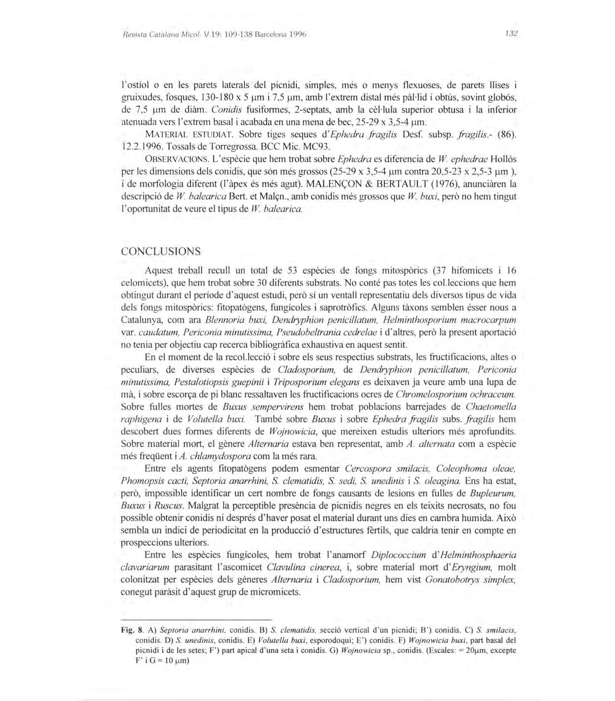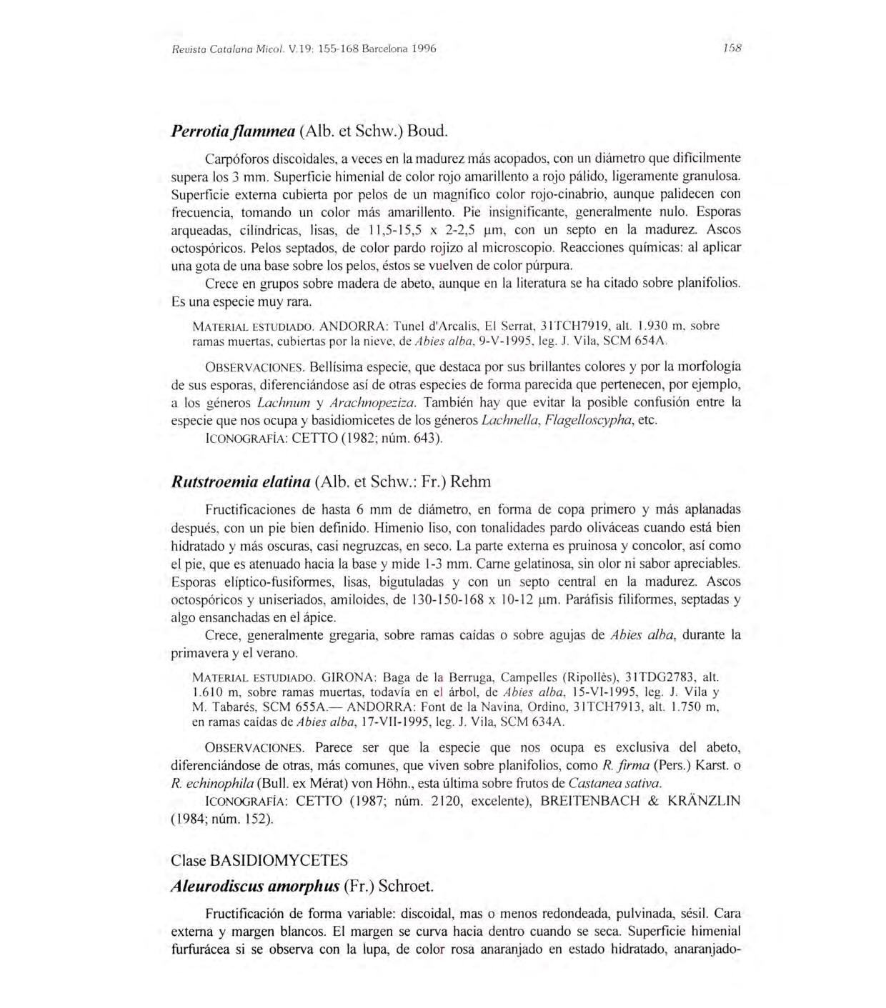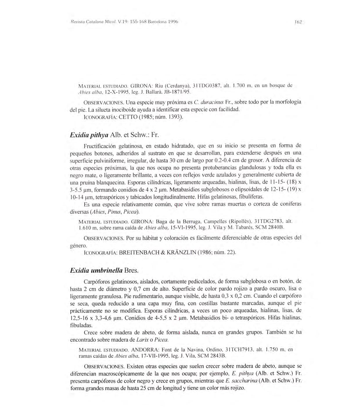 MATE RIAL ESTU DIADü. G IRONA:Baga d e la Berr uga, Campelles(Ripollès) , 31TDG2783 , alt. 1.6 10 rn, so breramasrnuertas,tod avíaen e l àrbol, de Abies alba , 3-VI -1995 , leg A Rocabruna y J. V ila, SC M 595A.- AND ORRA: Fo ntd e la N avin a, Ordino , 31TCH7913 , alt.1.750m,e n rarnascaída s de Abies alba, 17-VII-199 5, leg.J.Vi la, SCM574A.