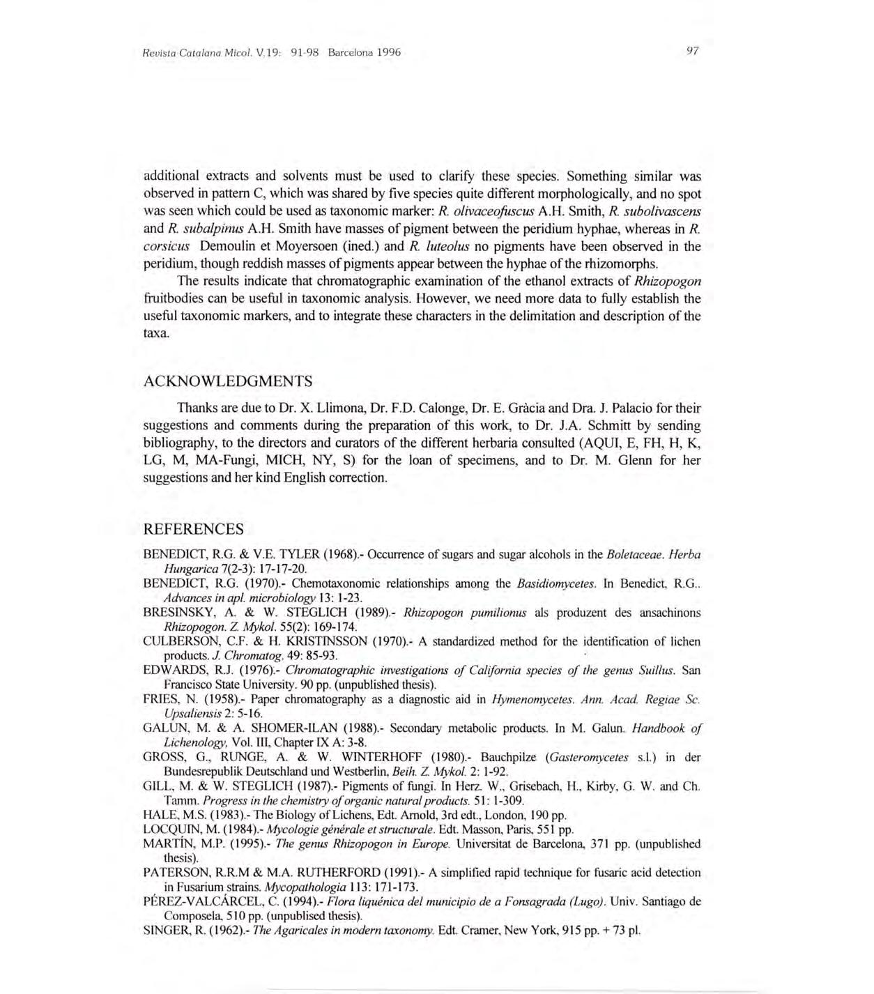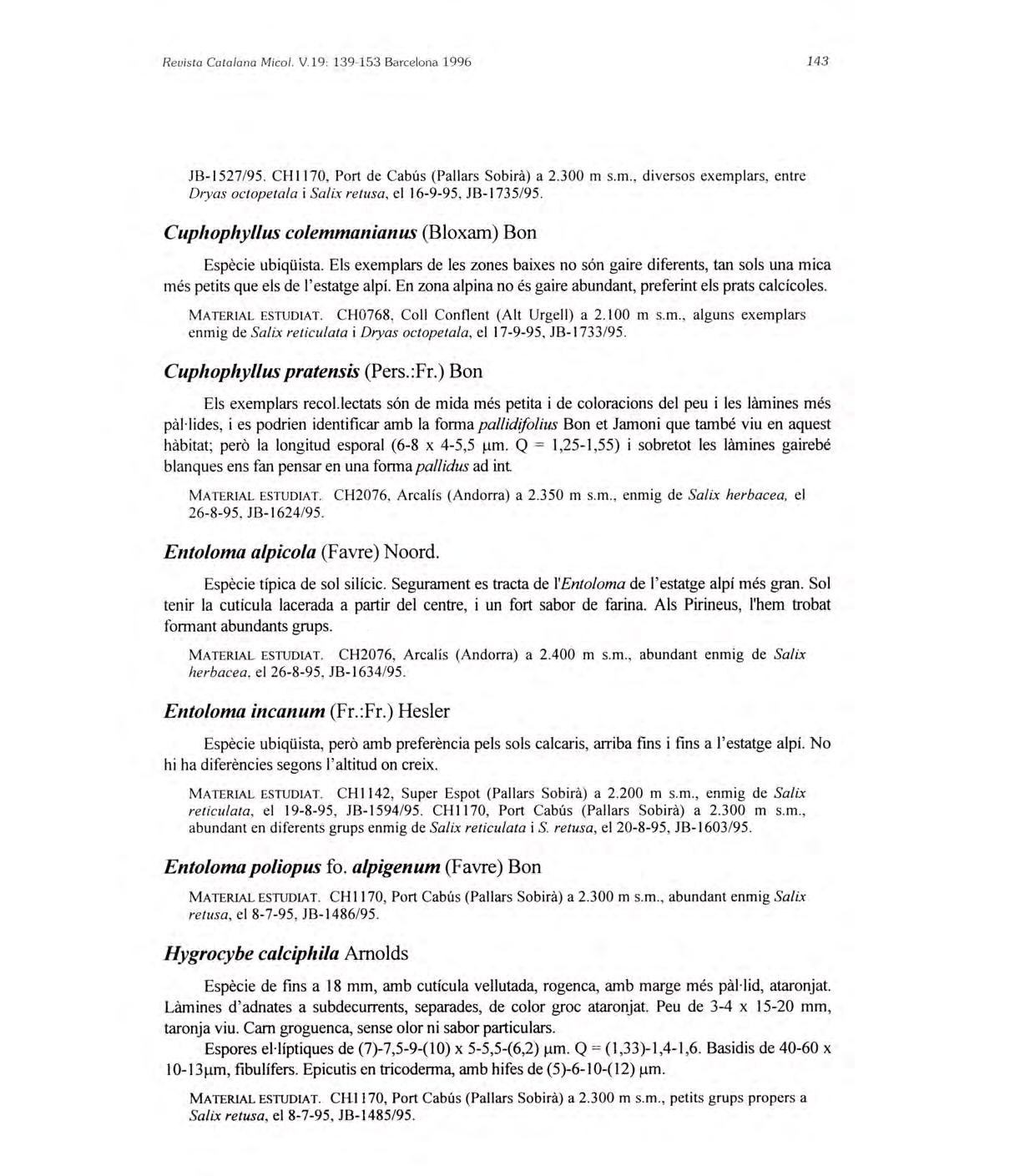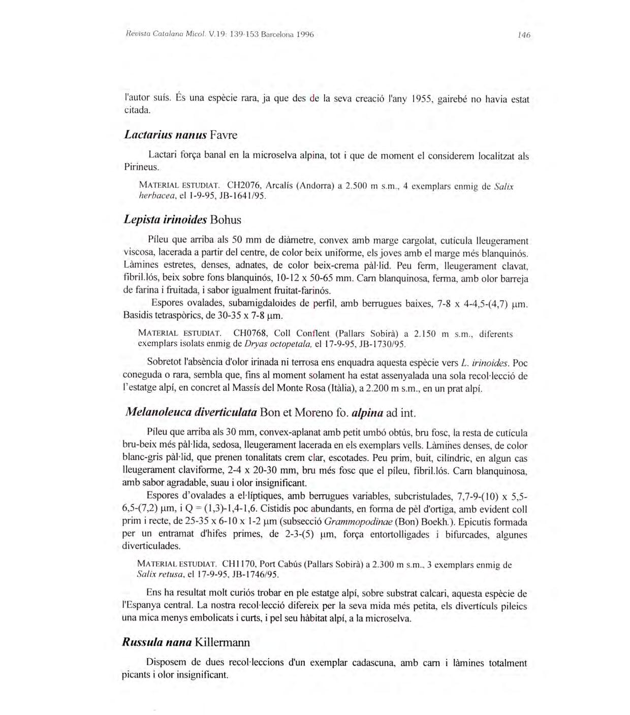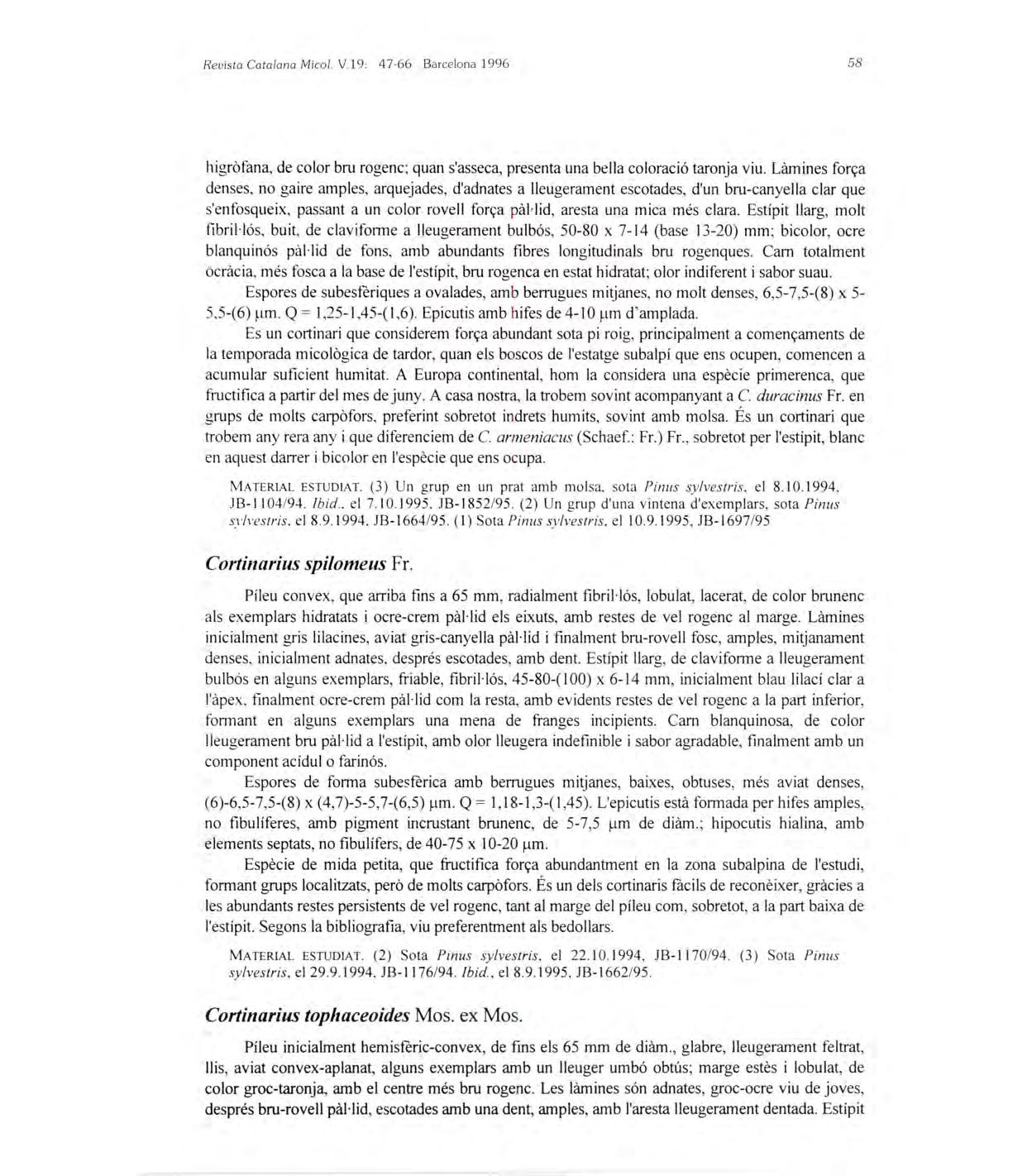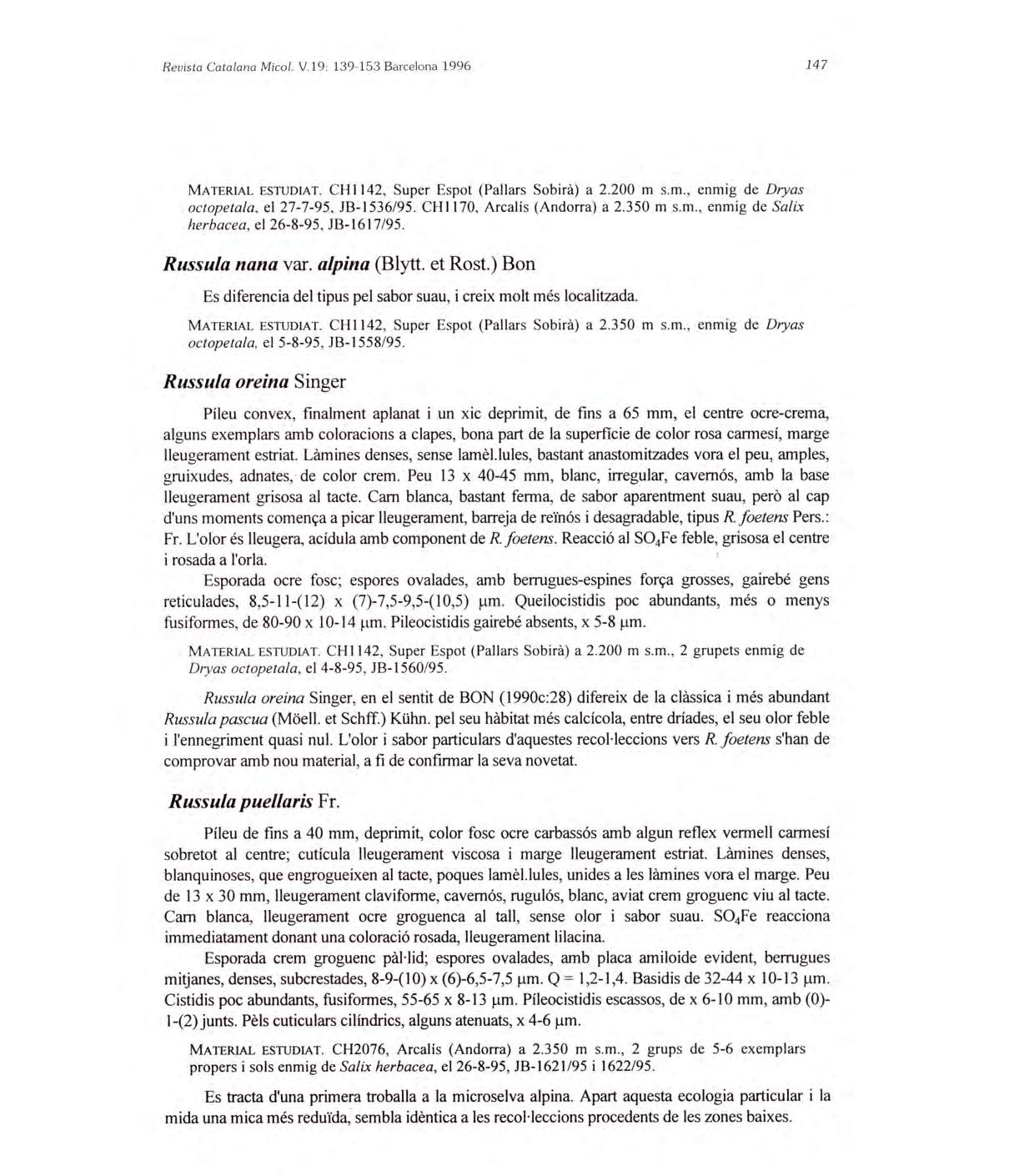 VolemagrairaF.Pando(RealJardínBotanico , C .S.LC.) laseva col-Iaboraci ó en permetre'ns la consulta delesbasesdedadesde"Flora Micológica Ibérica". Aquest treballhaestatenpart finançatpelprojecte"Flora Micológica Ibérica, 11" dela DGICYT n° PB-92-0012, onhihaintegrat undenosaltres(S.S.).