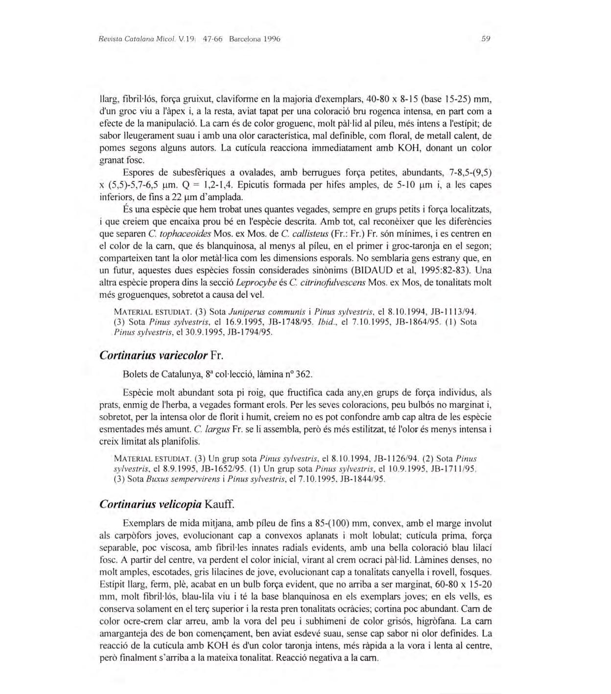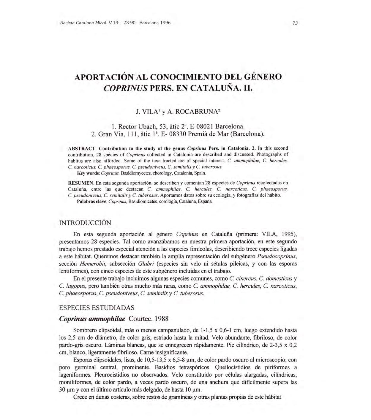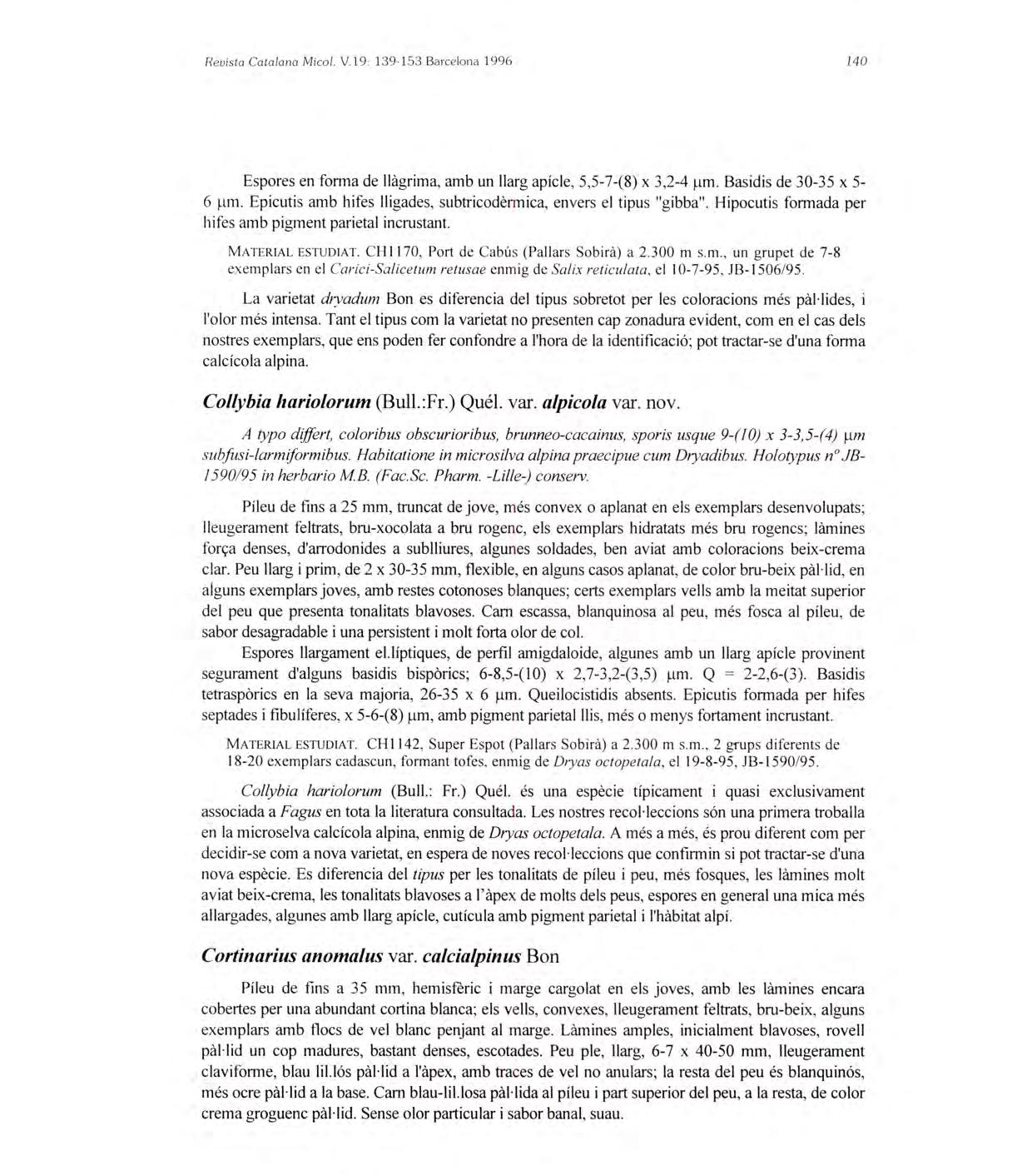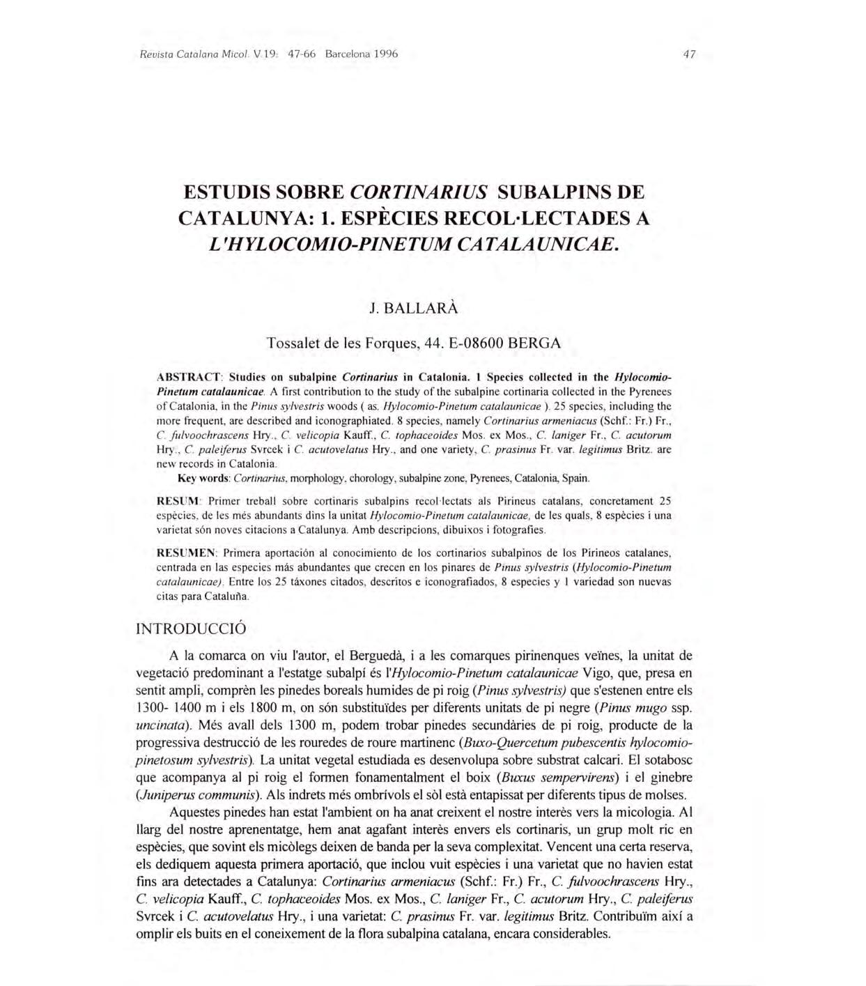 VolemagrairaF.Pando(RealJardínBotanico , C .S.LC.) laseva col-Iaboraci ó en permetre'ns la consulta delesbasesdedadesde"Flora Micológica Ibérica". Aquest treballhaestatenpart finançatpelprojecte"Flora Micológica Ibérica, 11" dela DGICYT n° PB-92-0012, onhihaintegrat undenosaltres(S.S.).