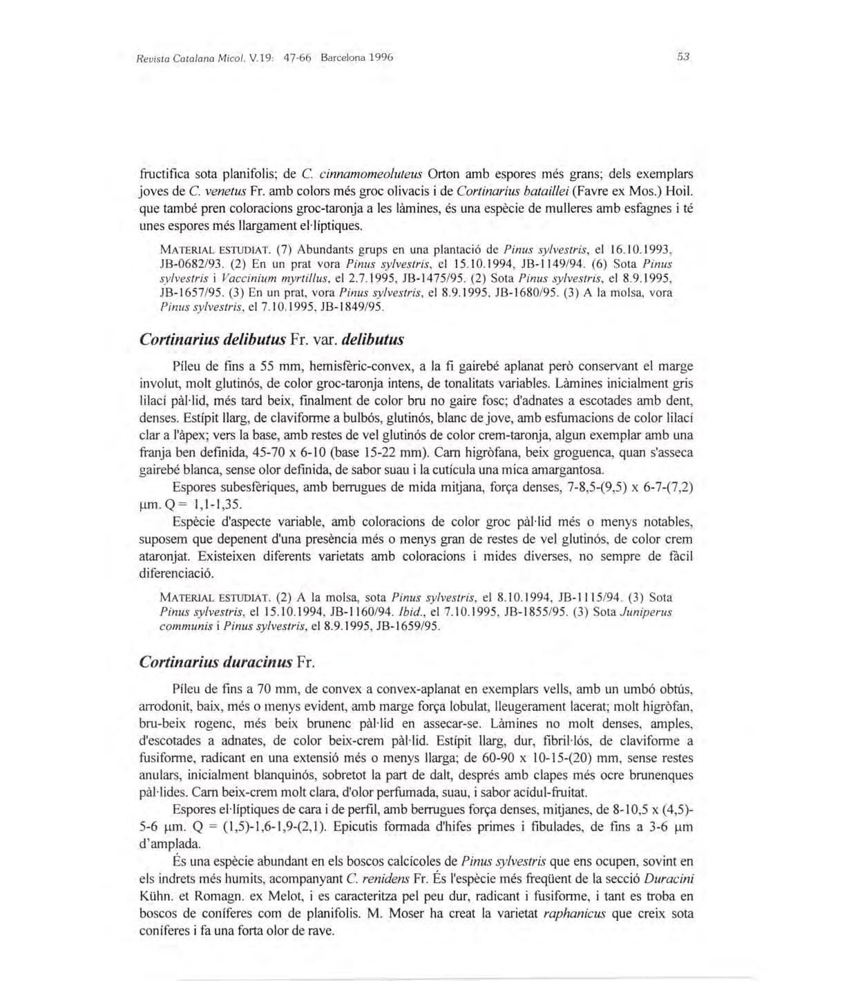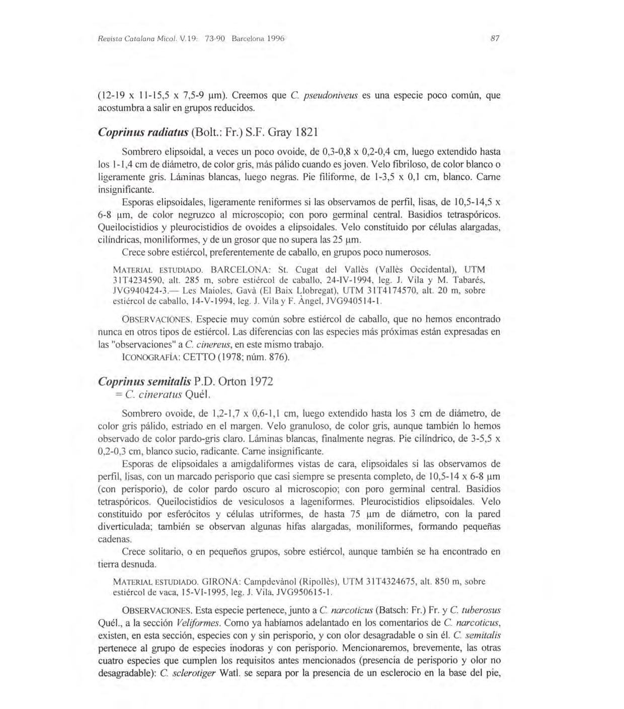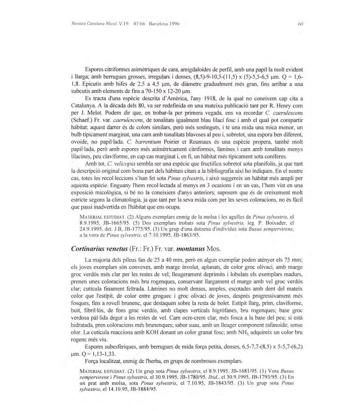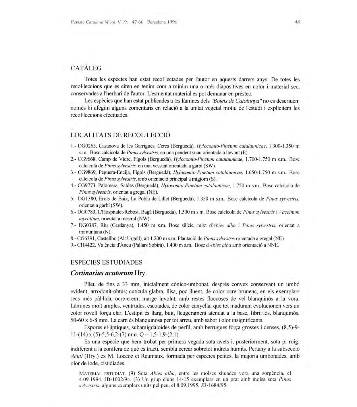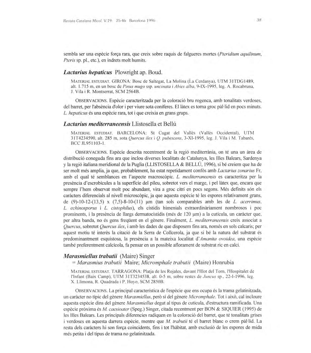 VolemagrairaF.Pando(RealJardínBotanico , C .S.LC.) laseva col-Iaboraci ó en permetre'ns la consulta delesbasesdedadesde"Flora Micológica Ibérica". Aquest treballhaestatenpart finançatpelprojecte"Flora Micológica Ibérica, 11" dela DGICYT n° PB-92-0012, onhihaintegrat undenosaltres(S.S.).