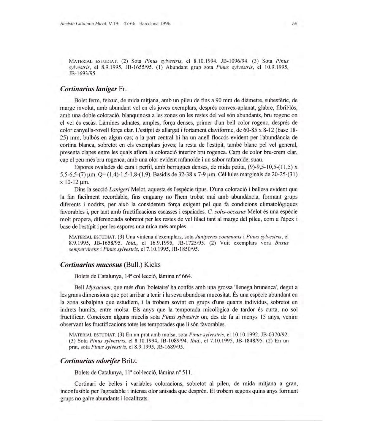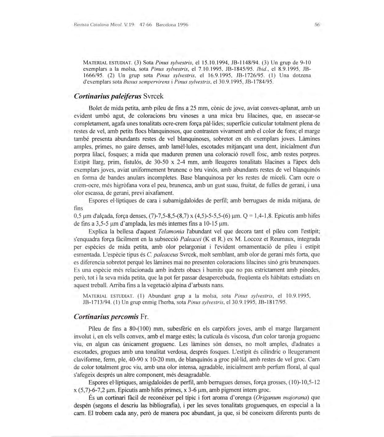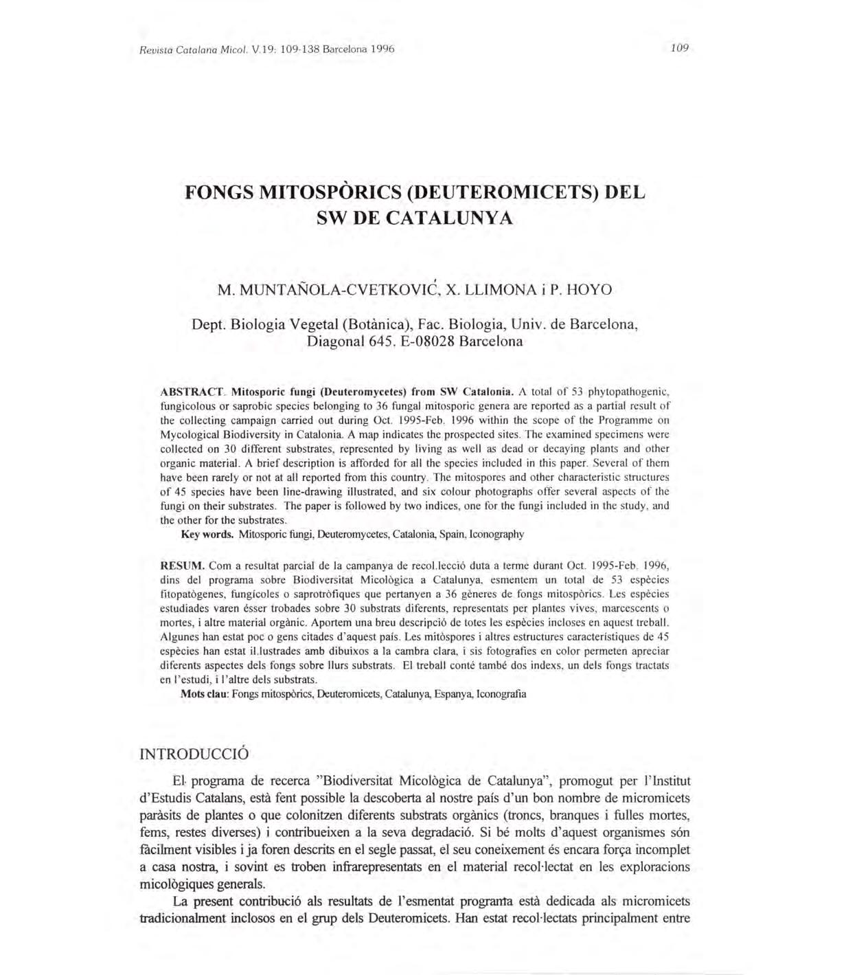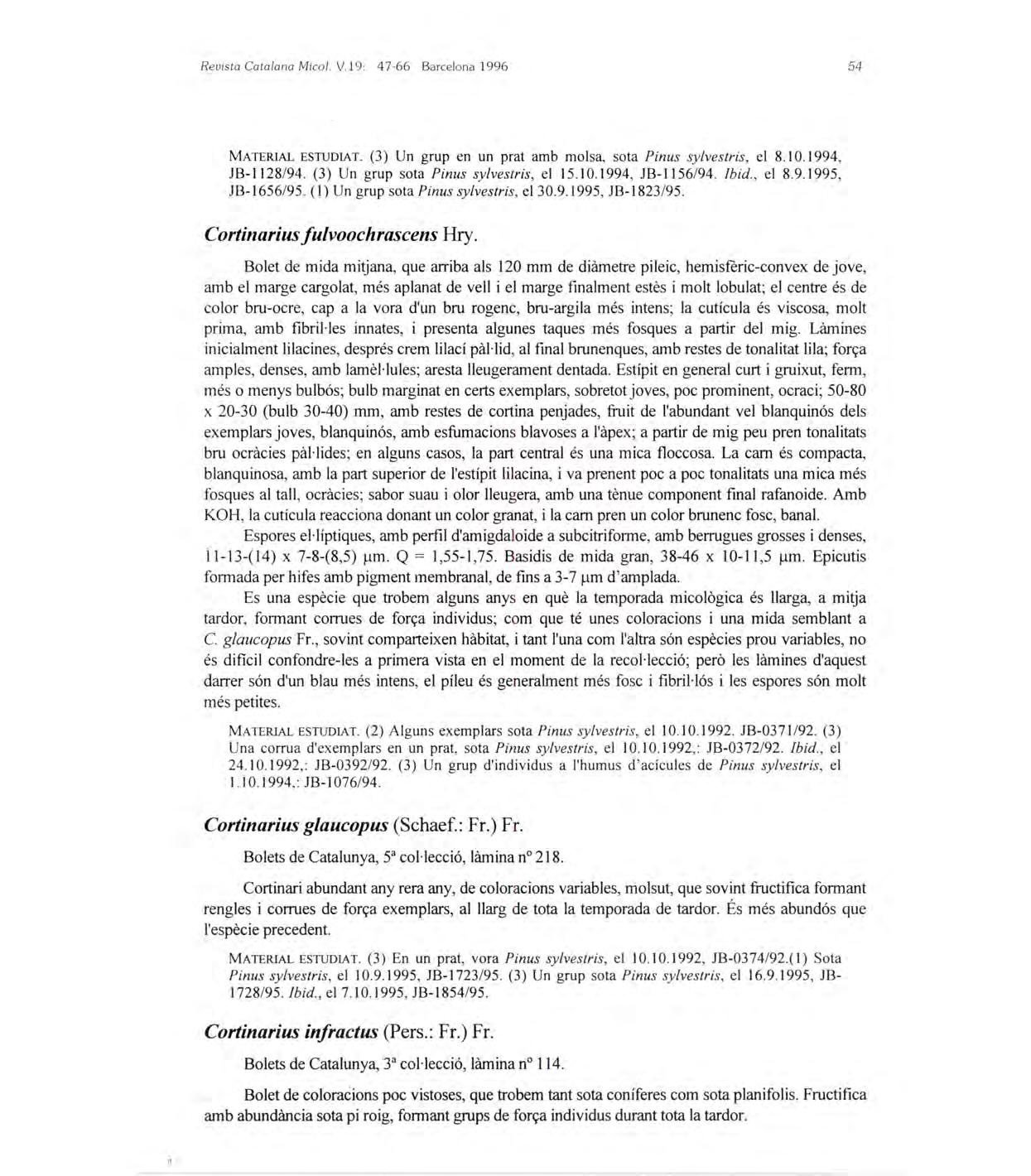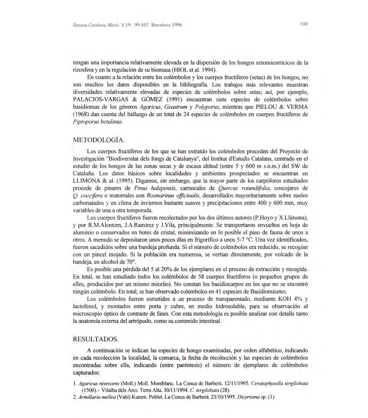 VolemagrairaF.Pando(RealJardínBotanico , C .S.LC.) laseva col-Iaboraci ó en permetre'ns la consulta delesbasesdedadesde"Flora Micológica Ibérica". Aquest treballhaestatenpart finançatpelprojecte"Flora Micológica Ibérica, 11" dela DGICYT n° PB-92-0012, onhihaintegrat undenosaltres(S.S.).