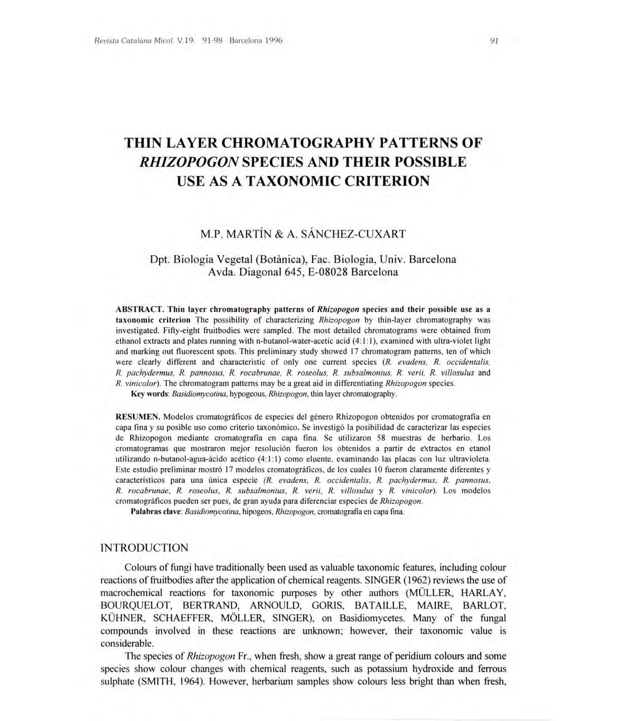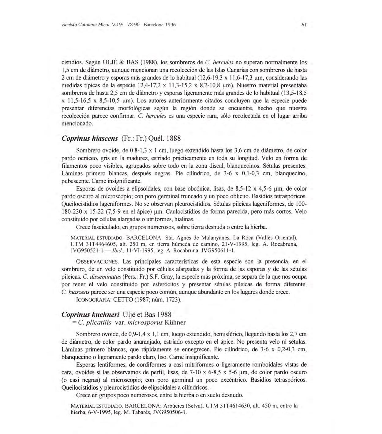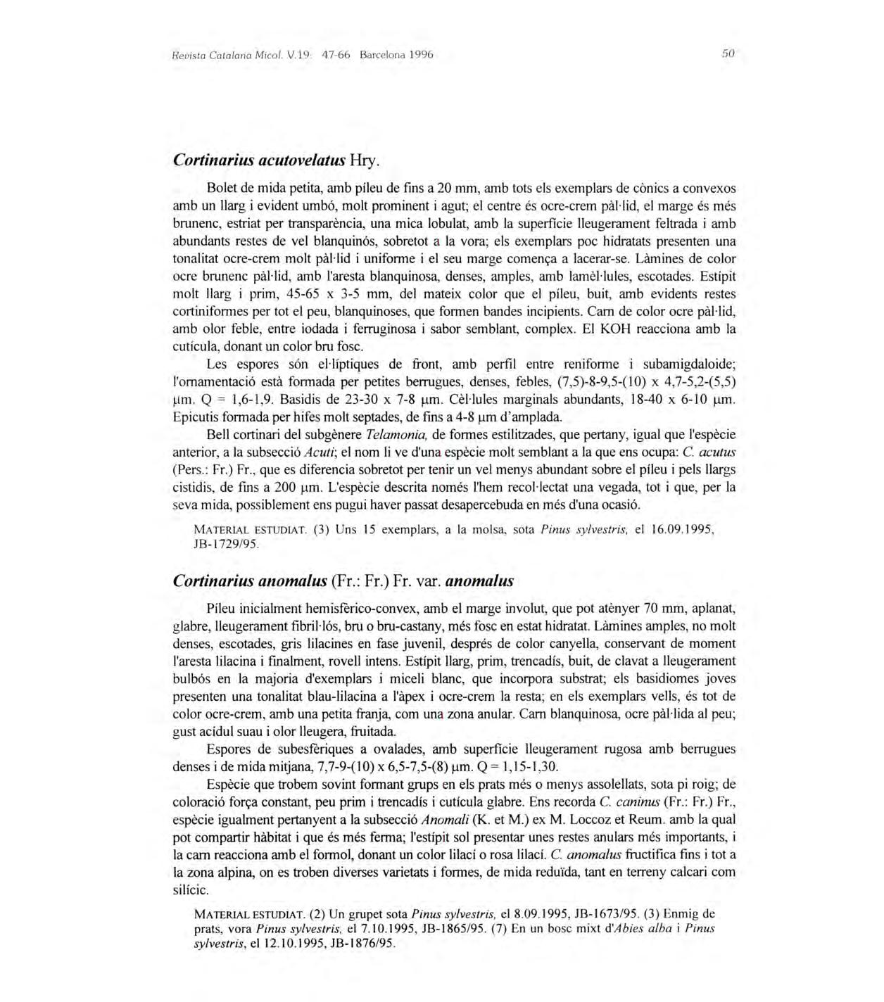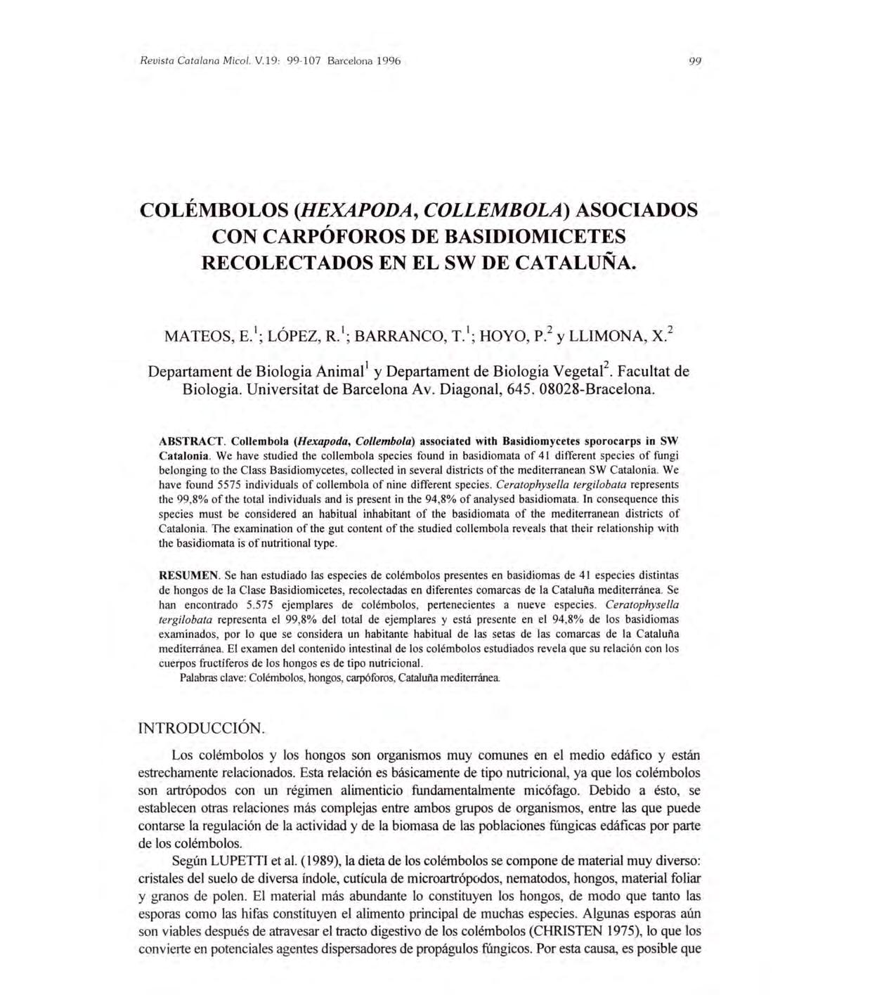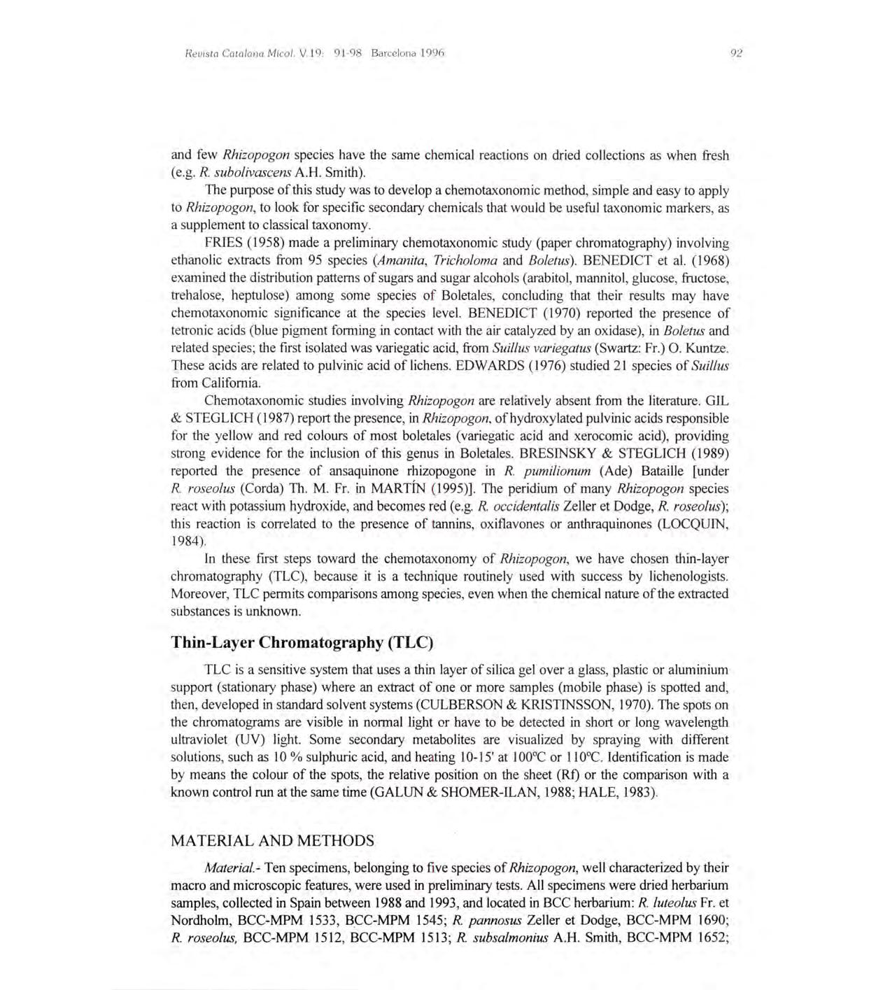 VolemagrairaF.Pando(RealJardínBotanico , C .S.LC.) laseva col-Iaboraci ó en permetre'ns la consulta delesbasesdedadesde"Flora Micológica Ibérica". Aquest treballhaestatenpart finançatpelprojecte"Flora Micológica Ibérica, 11" dela DGICYT n° PB-92-0012, onhihaintegrat undenosaltres(S.S.).