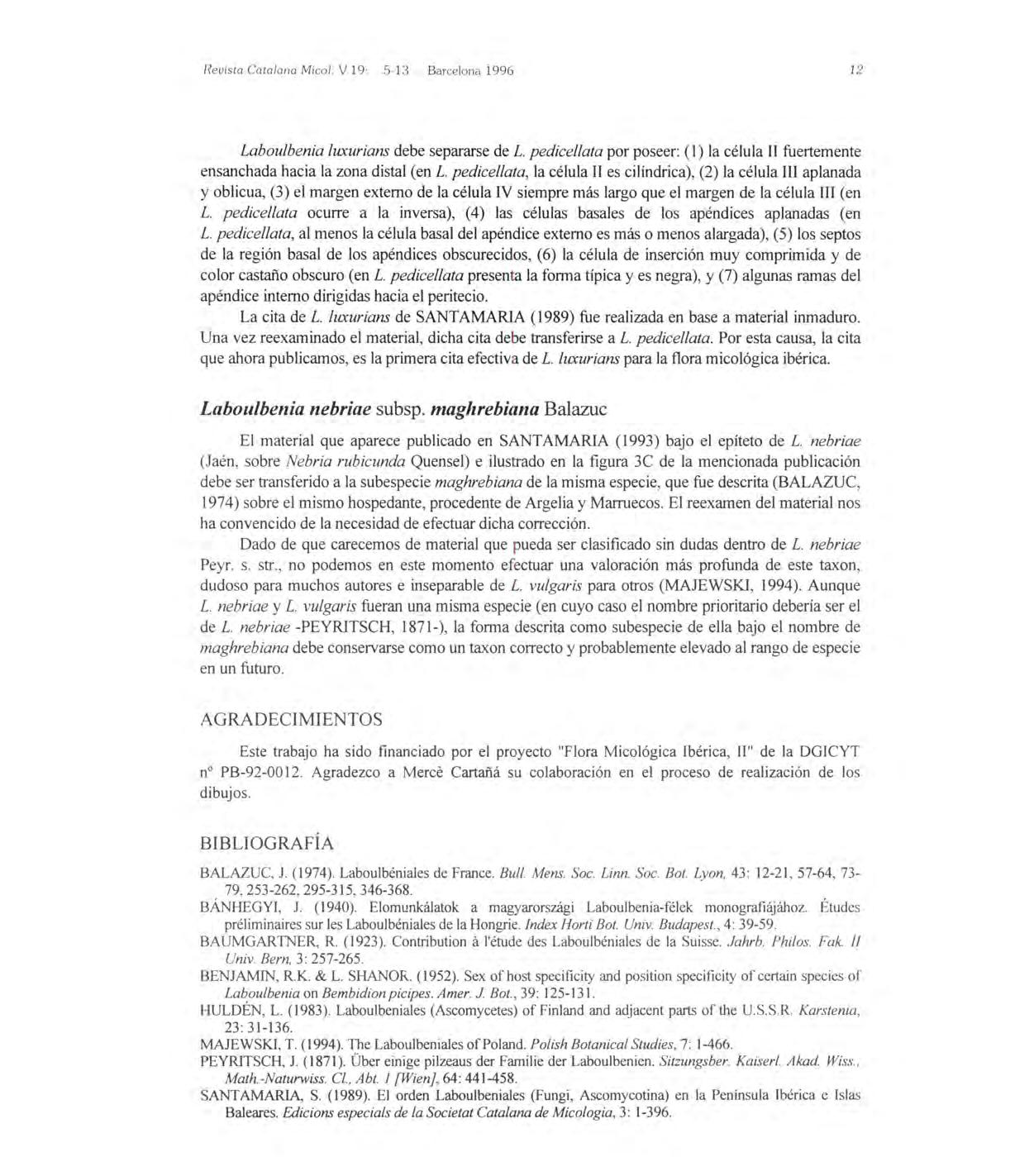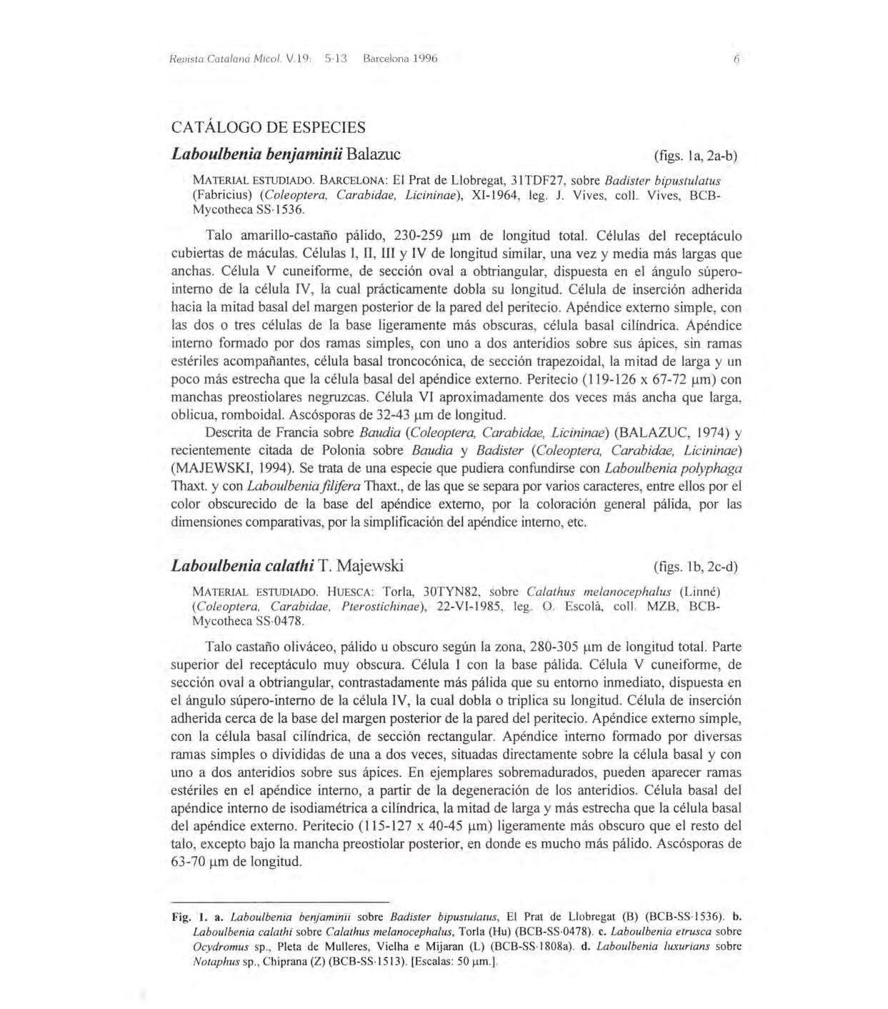 SANTAMARIA, S., BALAZUC, 1.& 1.1. TAVARES (1991) Distribution oftheEuropeanLaboulbeniales (Fungi, Ascomycotina). An Annotatedlistofspecies. Treballsdel'InstitutBotàni c de Barcelona , 14:1-123.