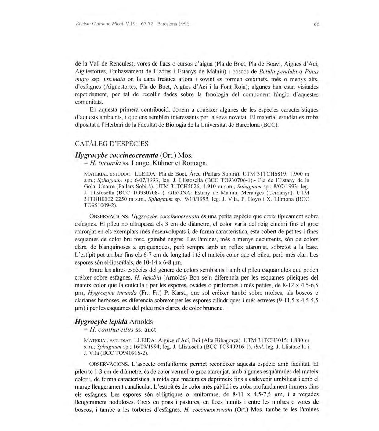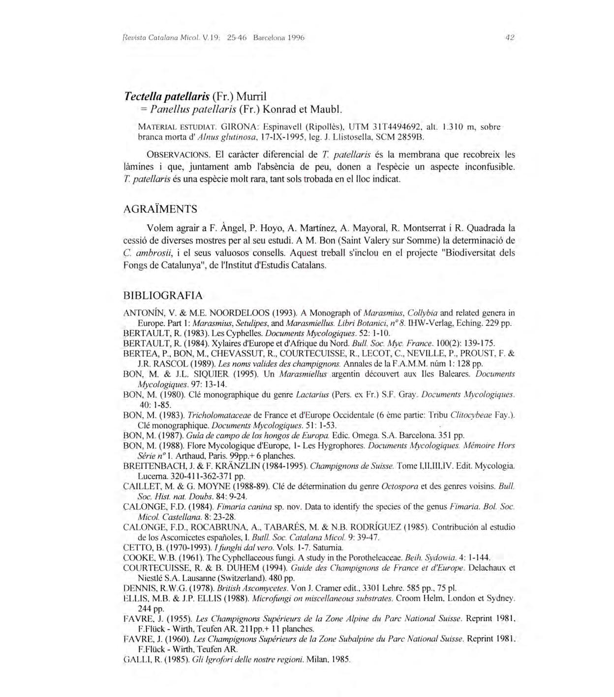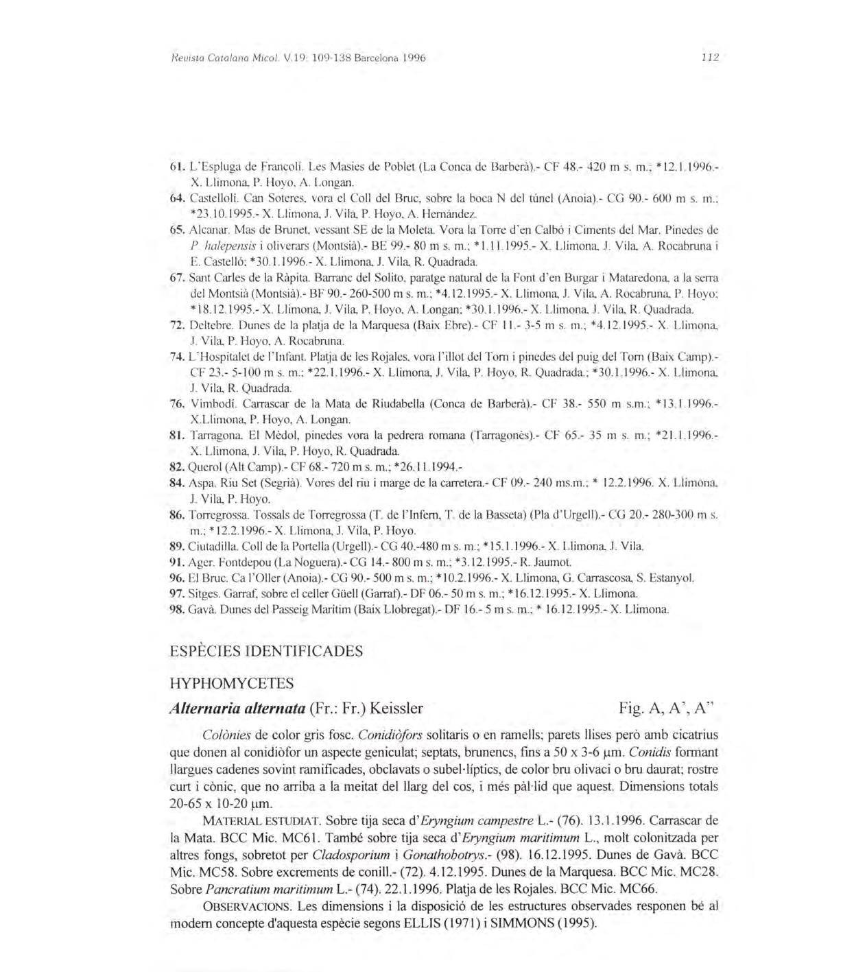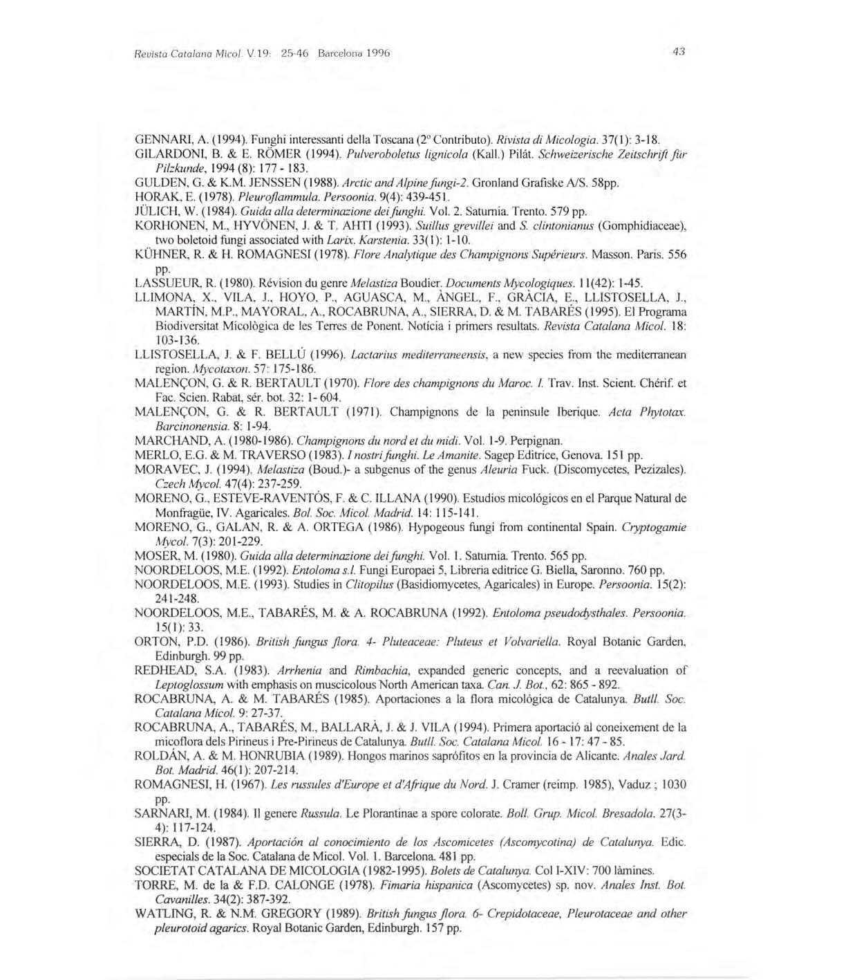 LLIMONA, X ., VILA , 1., HOYO , P., AGUASCA, M. , ÀNGEL , F ., GRÀCIA , E ., LLIS TOS ELLA , 1., MARTÍN , M .P., MAYORAL , A ., ROCABRUNA , A , SIERRA , O & TABARÉS , M.1995 .E l programa Biodiversitat Micològ ica delesTerresdePonen t. Notícia i primersresultats.Rev. C atalanaMicol.18 : 103136.