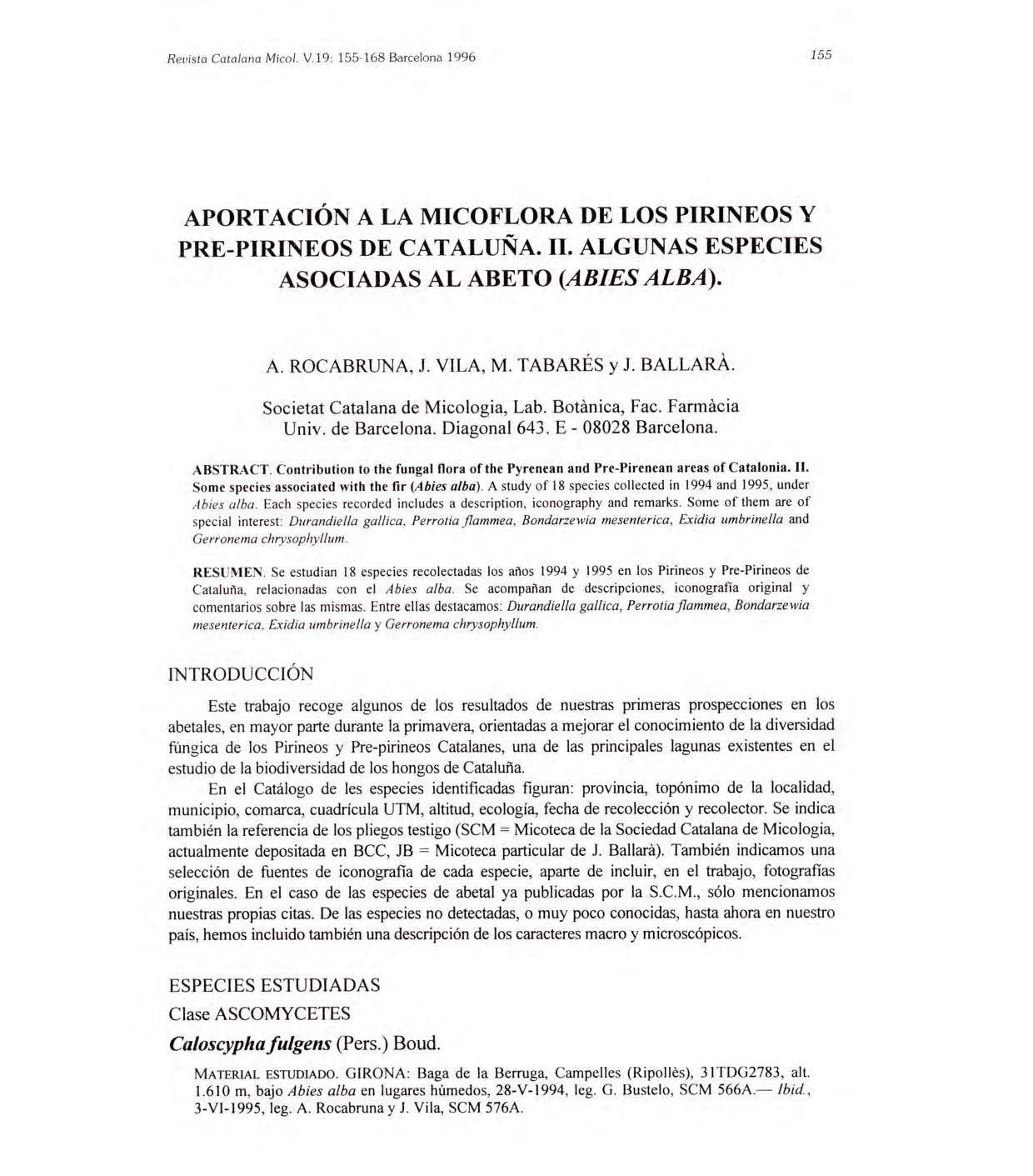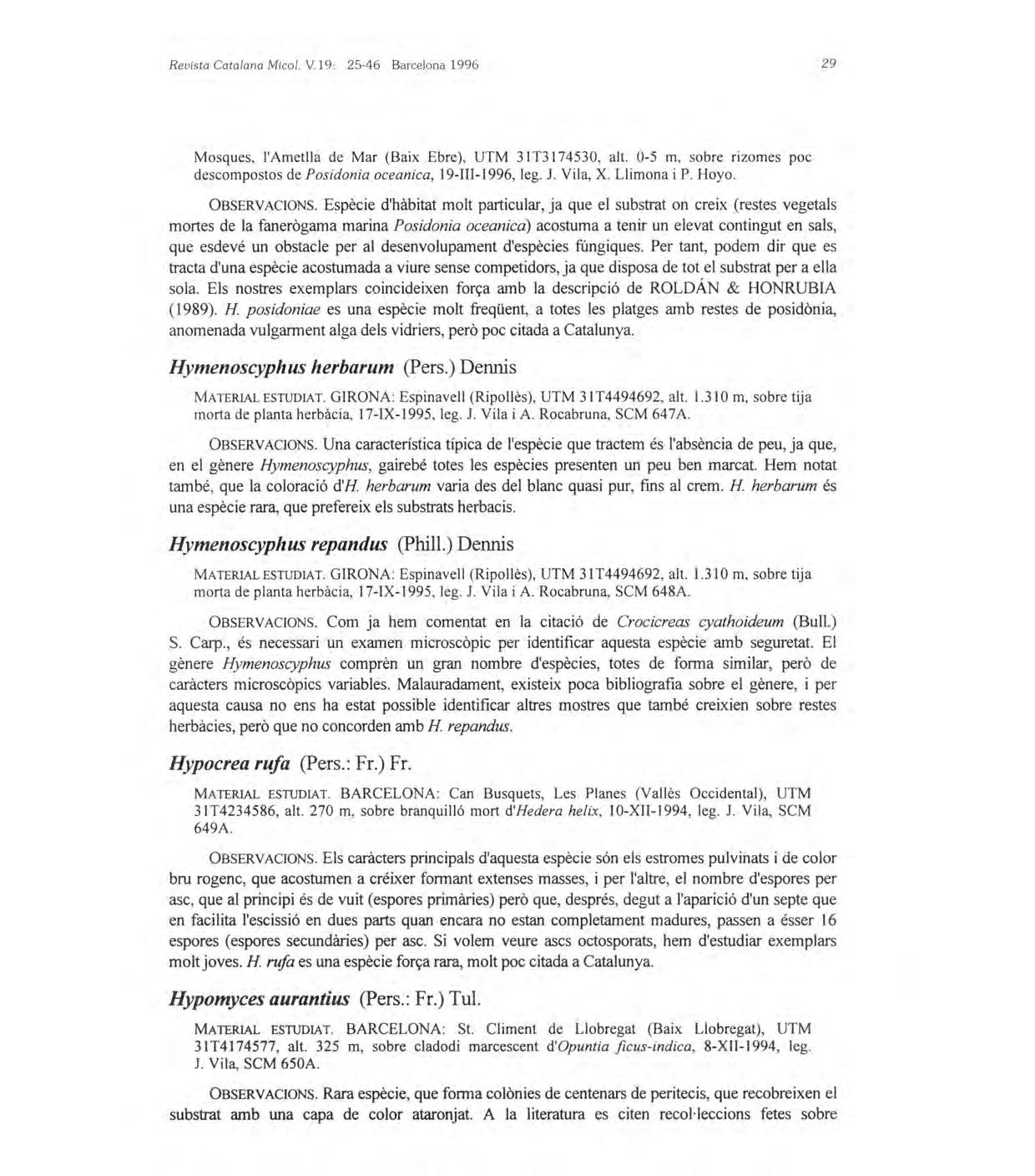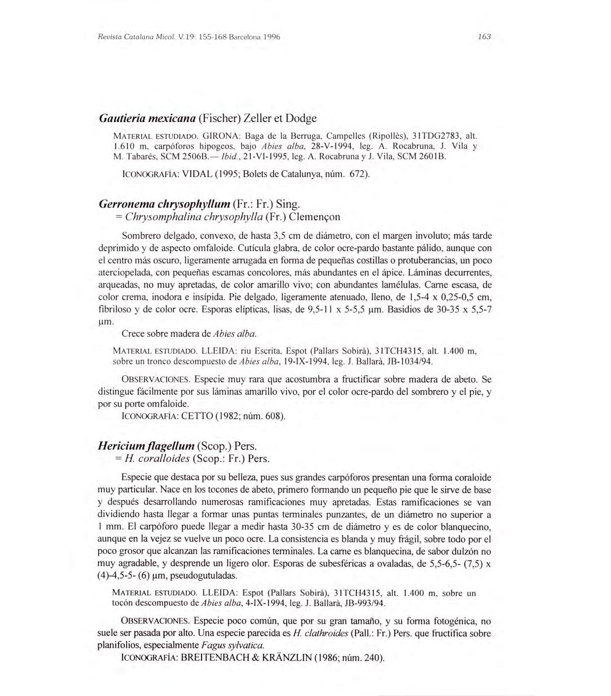 LLIMONA, X ., VILA , 1., HOYO , P., AGUASCA, M. , ÀNGEL , F ., GRÀCIA , E ., LLIS TOS ELLA , 1., MARTÍN , M .P., MAYORAL , A ., ROCABRUNA , A , SIERRA , O & TABARÉS , M.1995 .E l programa Biodiversitat Micològ ica delesTerresdePonen t. Notícia i primersresultats.Rev. C atalanaMicol.18 : 103136.