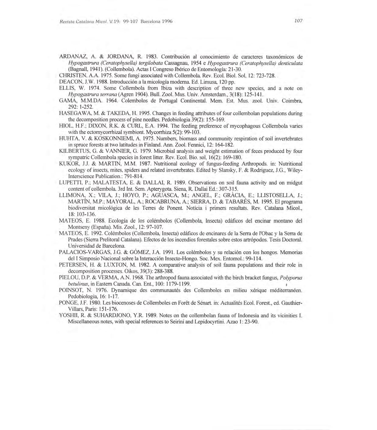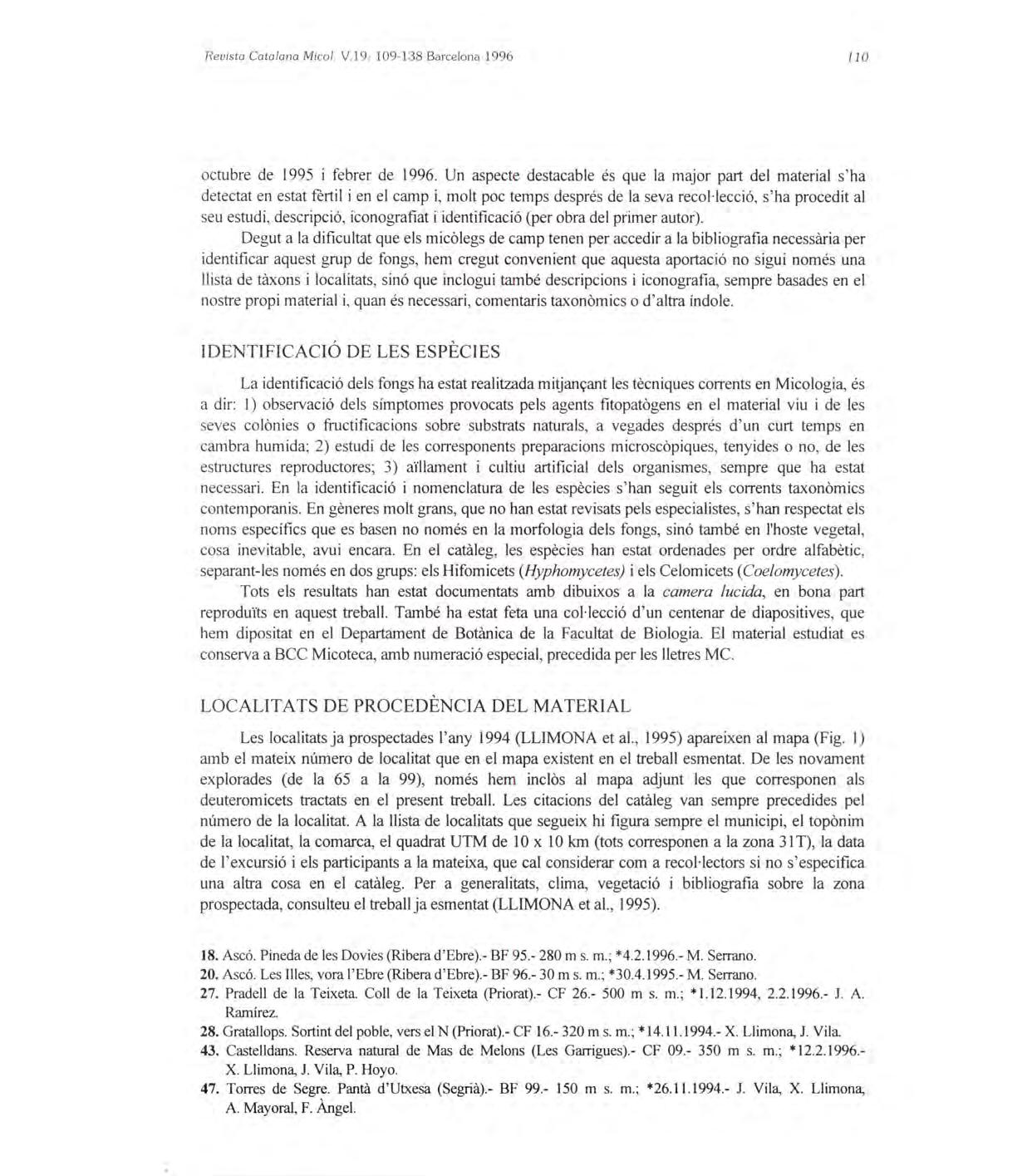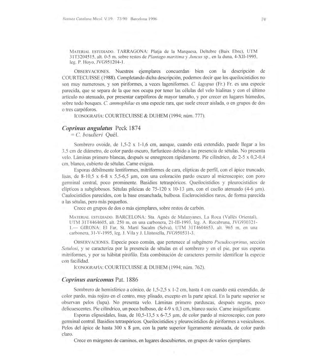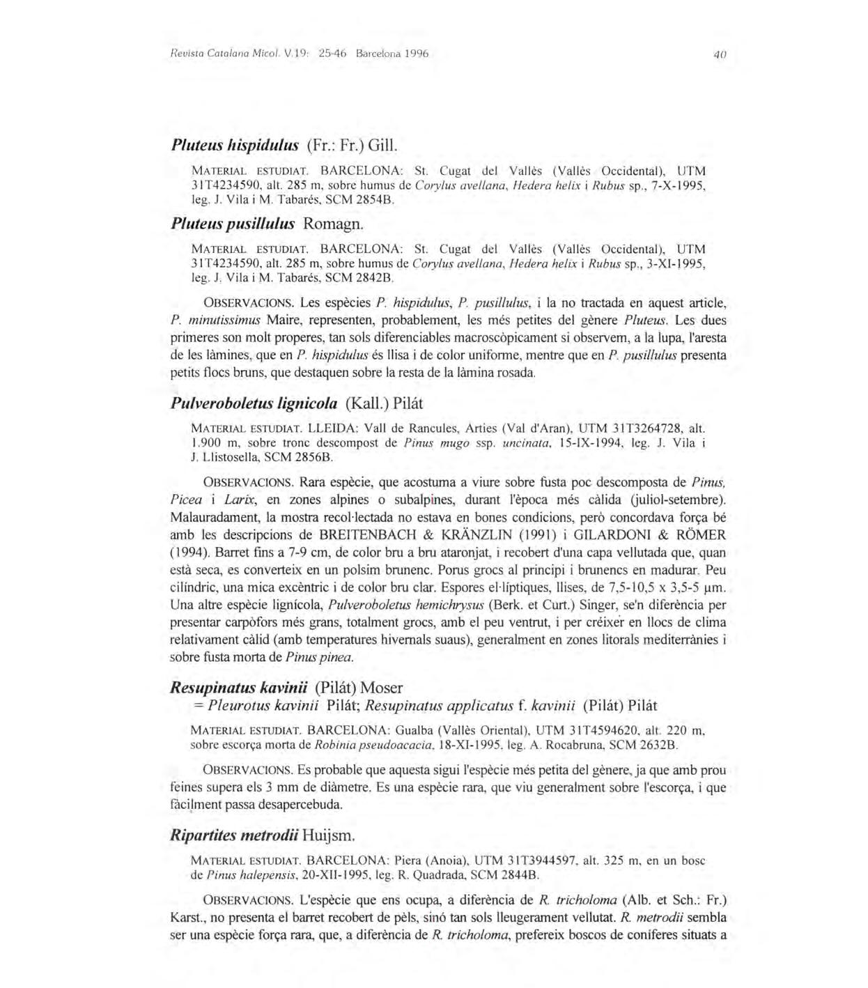 LLIMONA, X ., VILA , 1., HOYO , P., AGUASCA, M. , ÀNGEL , F ., GRÀCIA , E ., LLIS TOS ELLA , 1., MARTÍN , M .P., MAYORAL , A ., ROCABRUNA , A , SIERRA , O & TABARÉS , M.1995 .E l programa Biodiversitat Micològ ica delesTerresdePonen t. Notícia i primersresultats.Rev. C atalanaMicol.18 : 103136.