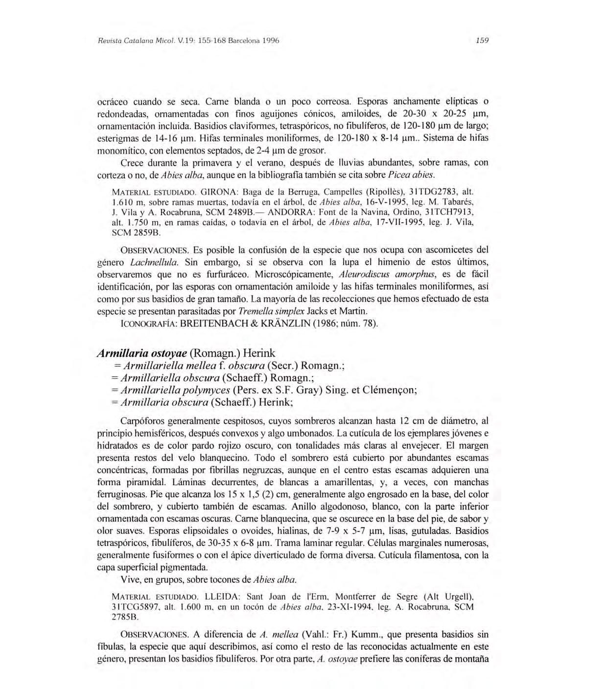 1. Vil a y A Rocabruna, S CM 2489B .-AN DO RRA: F ontd e la Navina, Ordino , 31TCH7913 , a lt. 1.750 m , enram as ca ídas , o t odavíaenel àrbol,d e Abies al ba , 17- VII-1995 , leg 1. Vila, SC M 2859B