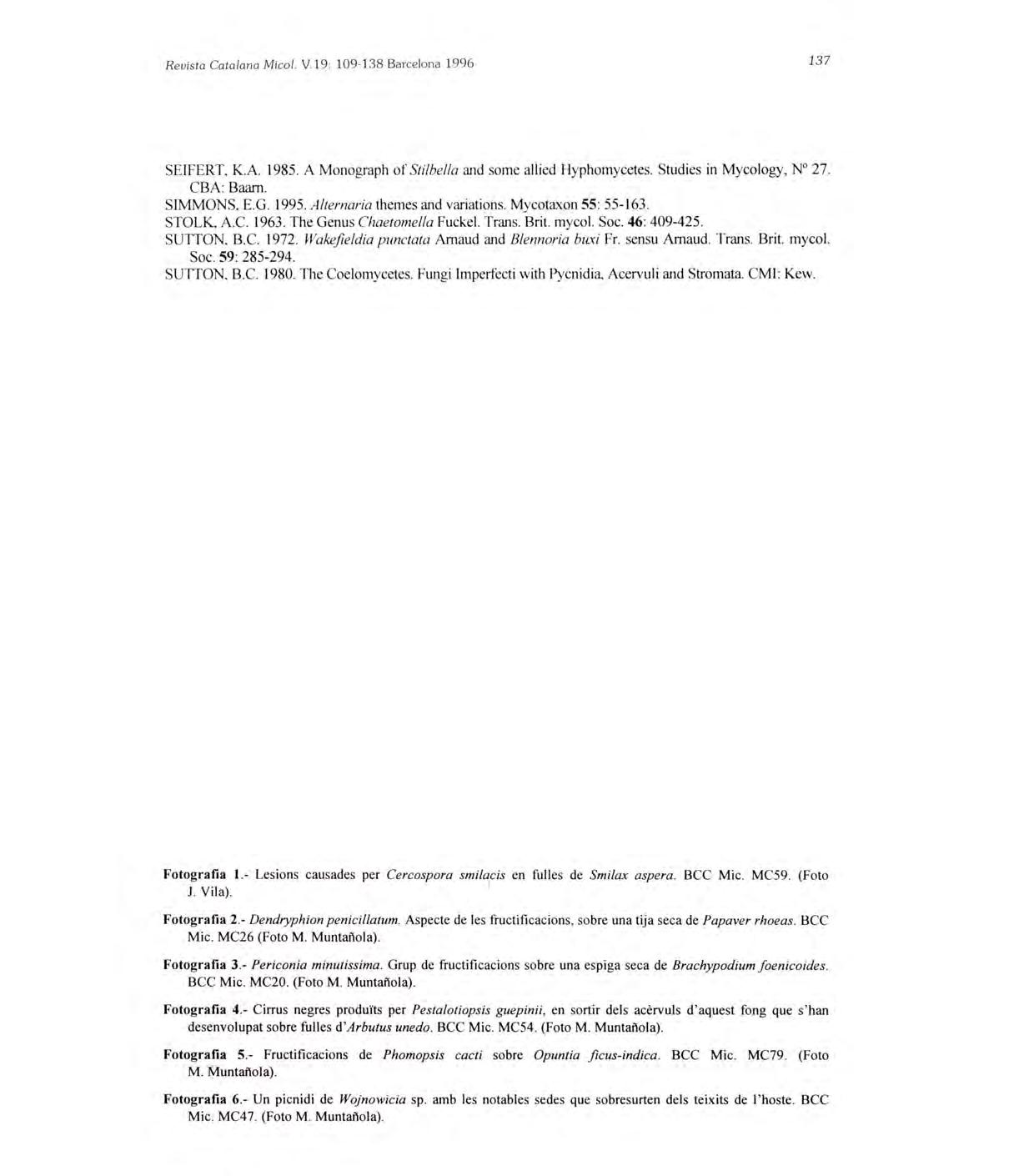 S UTTüN. B .C. 1980 . The C oelornycetes.Fun gi ImperfectiwithPy cnidia, Ac ervuli and Stromata. C MI:Kew.