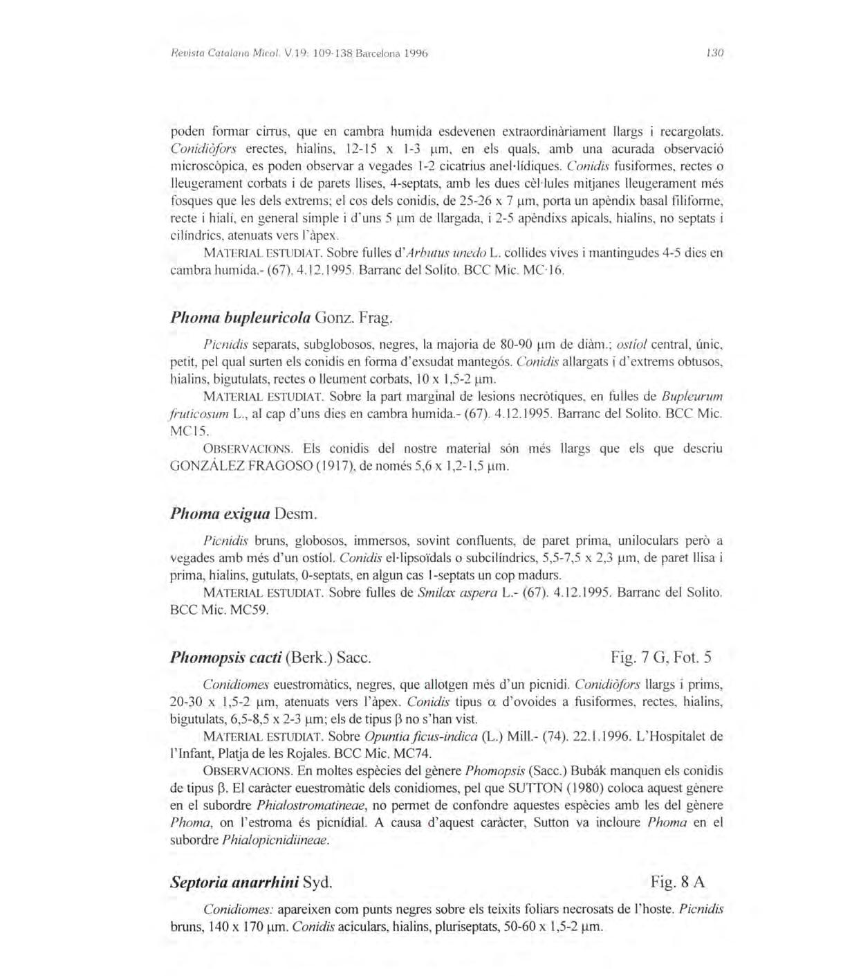 Stemphylium herbarum E . Simrnons; Eryngium maritimum excrements de conill: Ruscus acu/eatus