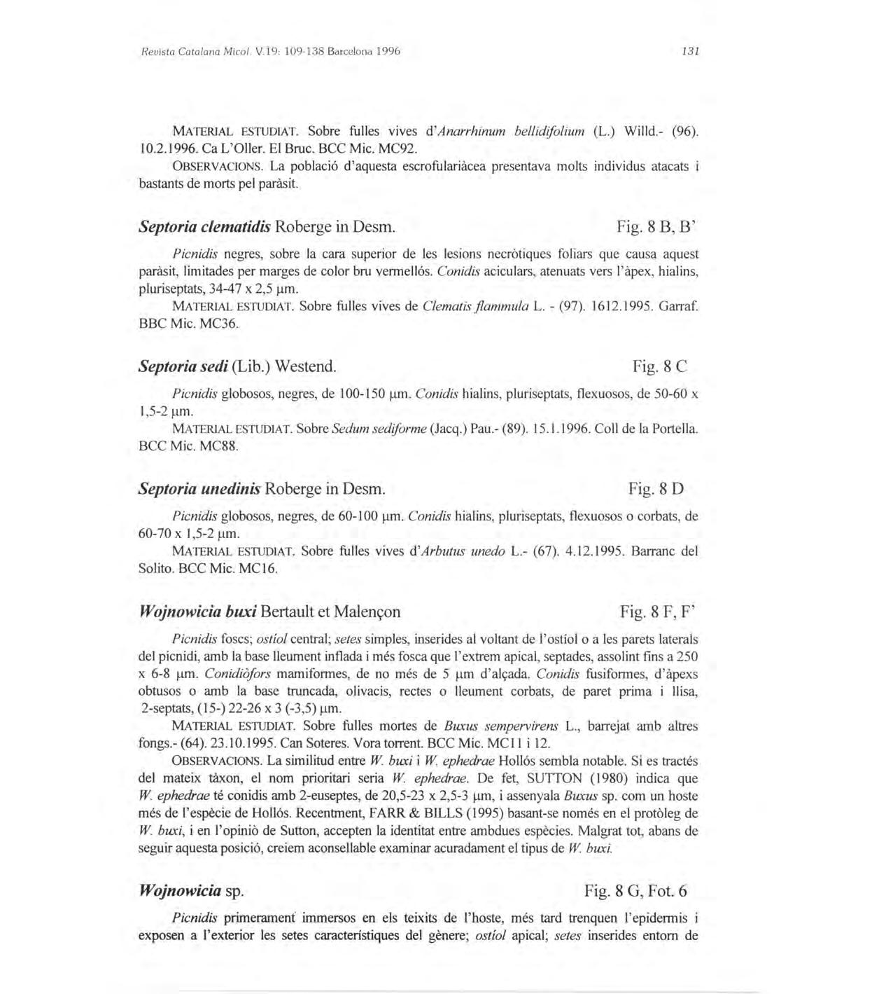 FARR O.F. & BIL LS, G .F. 1995 . Wojnowicia collurium sp.nov. ,isolatedfromconiferlitter. Mycologia, 87 : 518-524.
