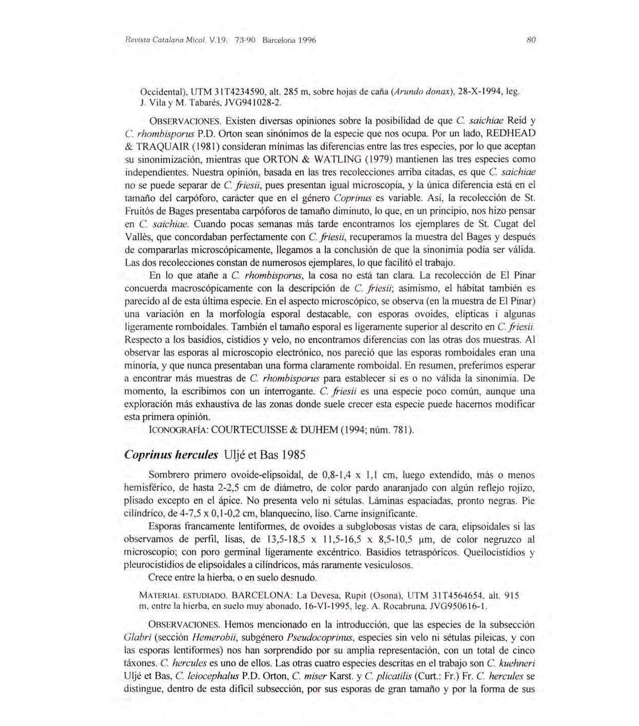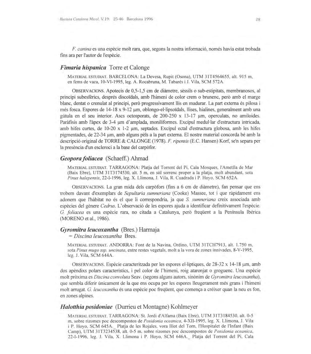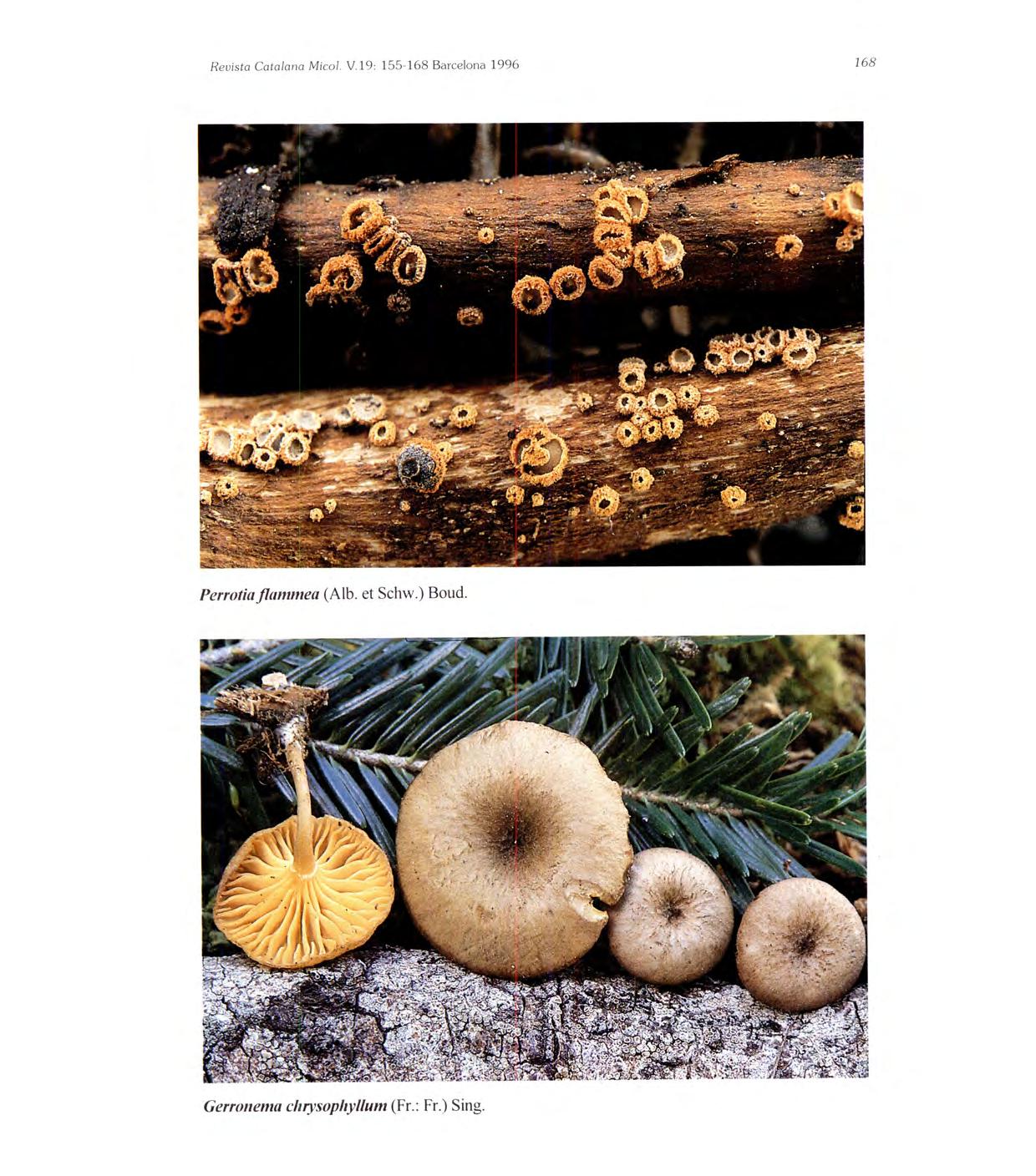 Ene l Santuariode N úria, RibesdeFresser (Ripo lIés), sobre Pinusmugo ssp. uncinata y en primavera,hemosrecolectado Lachne lulla s uec ica (de Bar)'exFuck.)Nannf.(verSIERRA, 1987), inconfundible rnicrosc ópicamente,por susesporas esféricas.