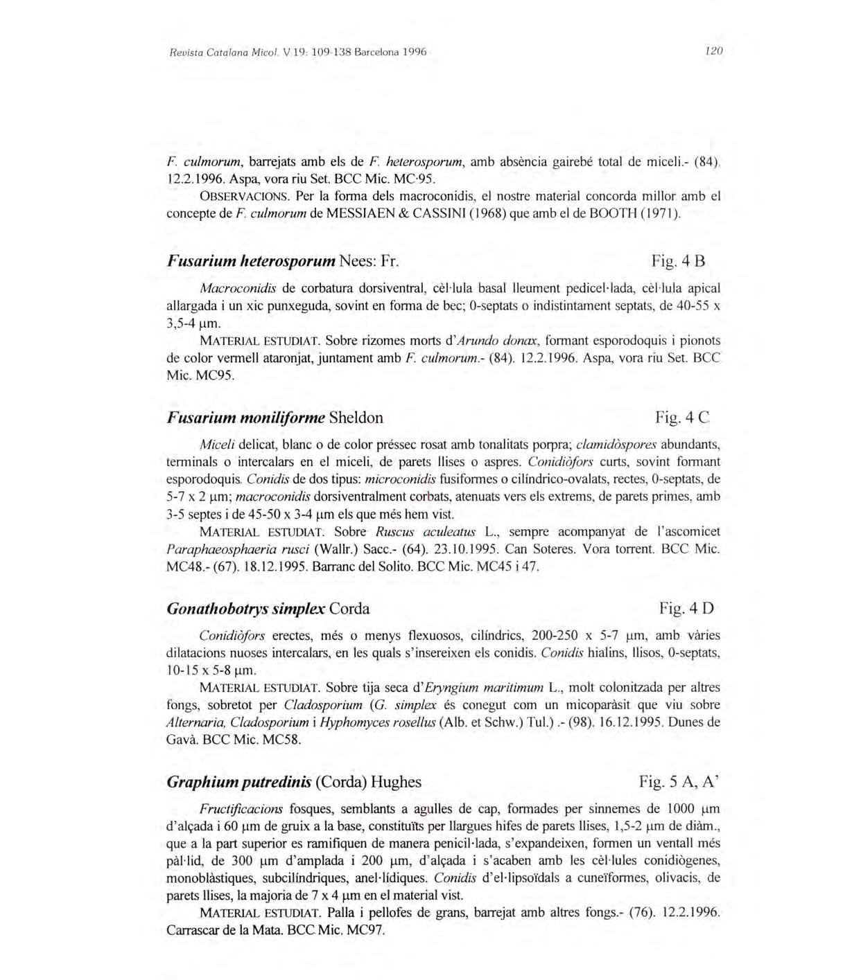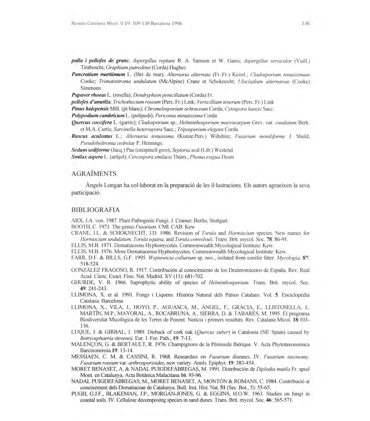 Arundo donax L. (canya); Fusarium culmorum (W.G. Smith) Sacc.; F heterosporum Nees:Fr.