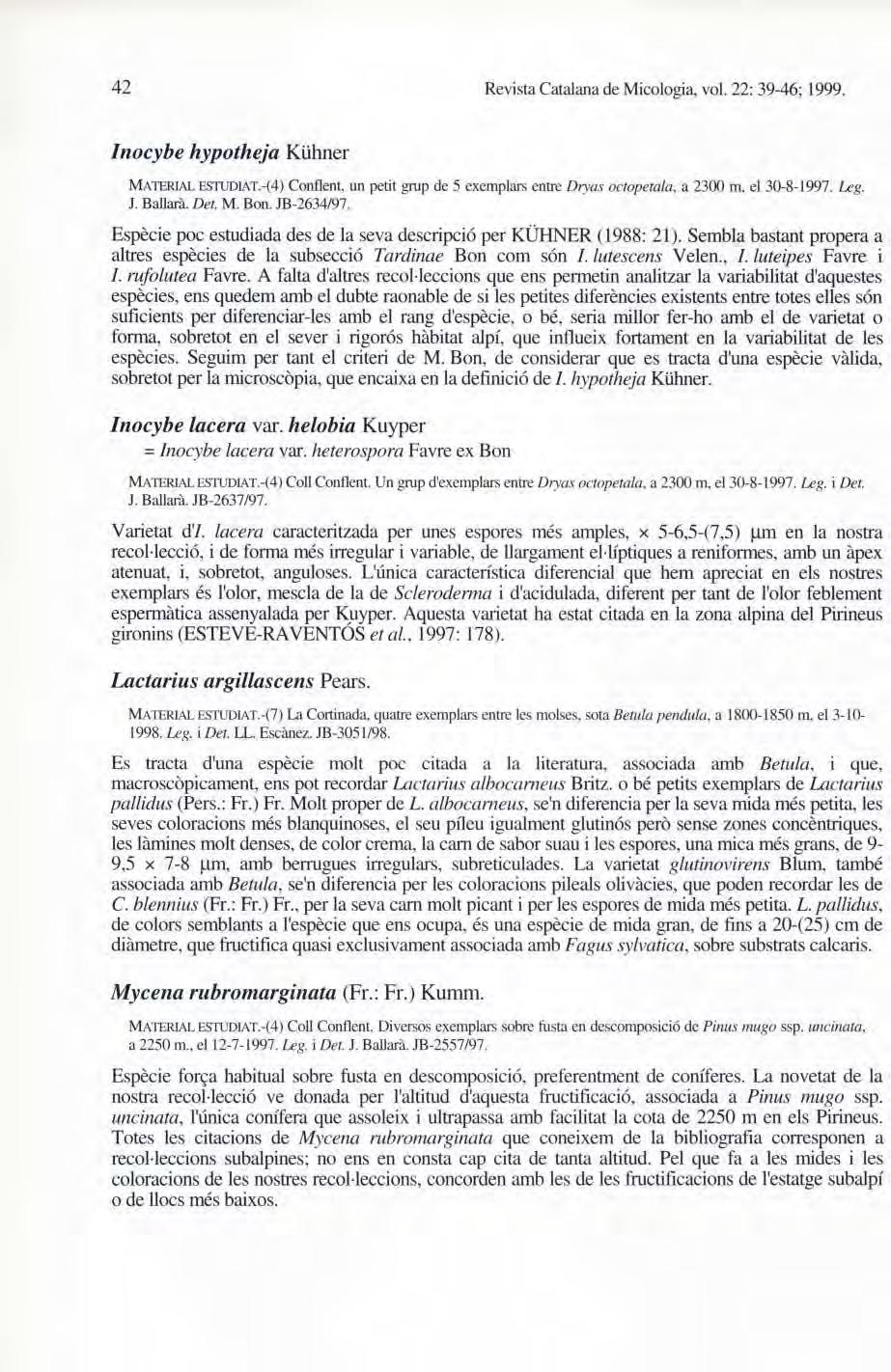 2.- Societat Catalana de Micologia, Dep. Botànica, Fac. Farmàcia, Univ. de Barcelona, Diagonal 643. E-08028, Barcelona.