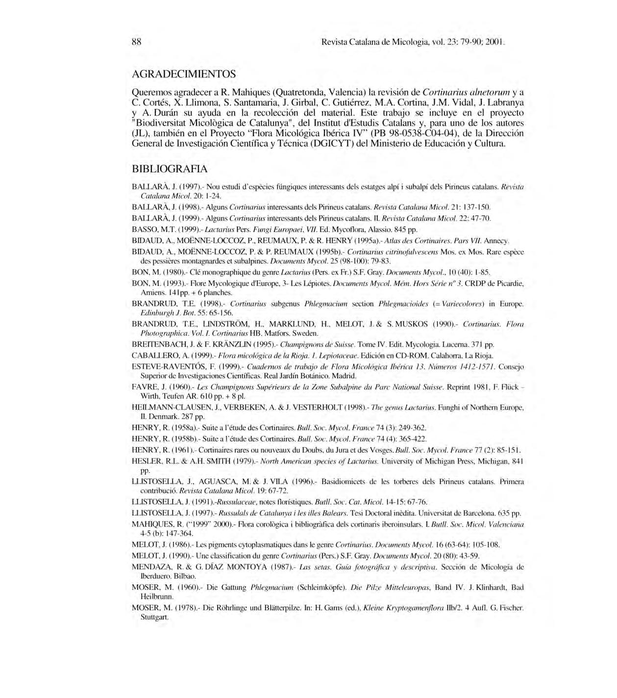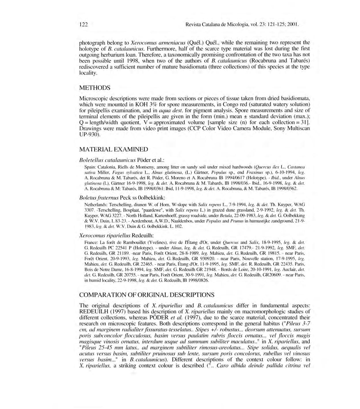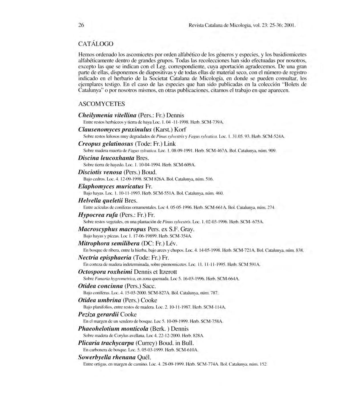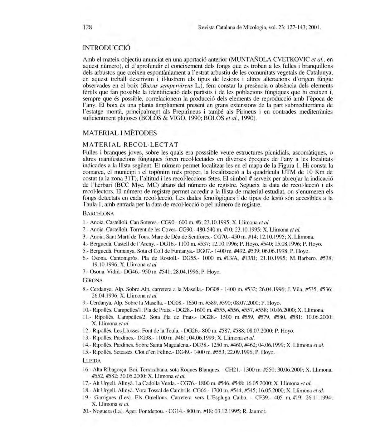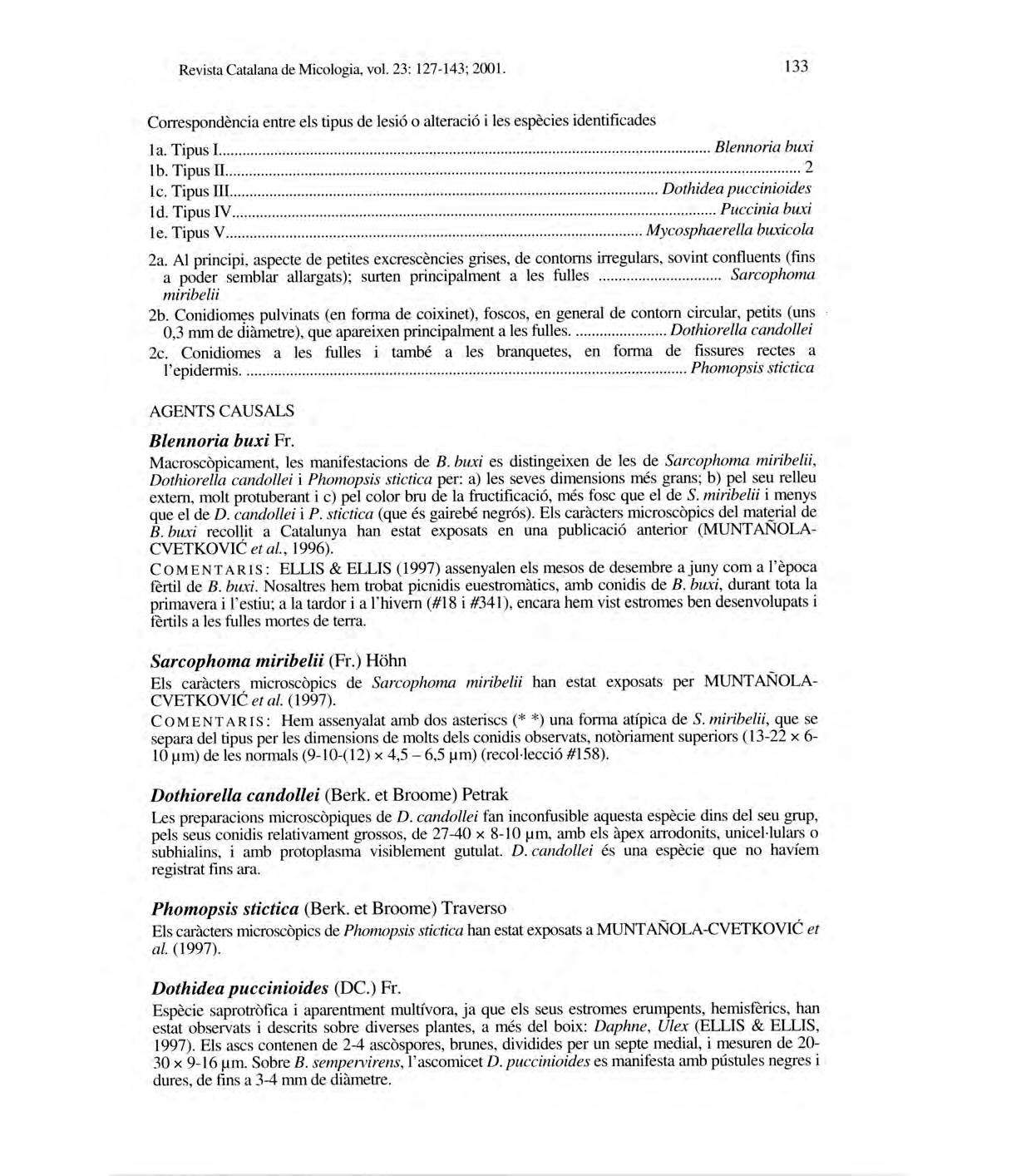 Revista Catalan a deMi cologia , vol.2 3: 1-24; 2001.