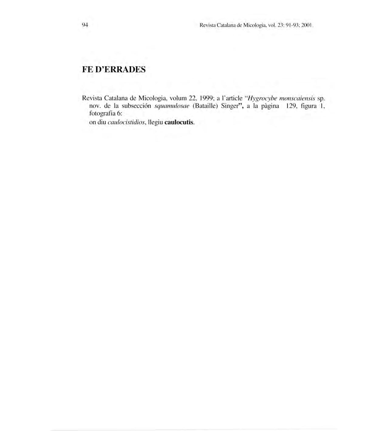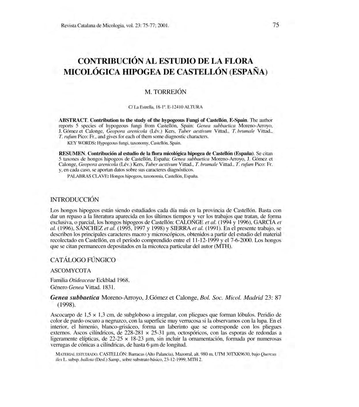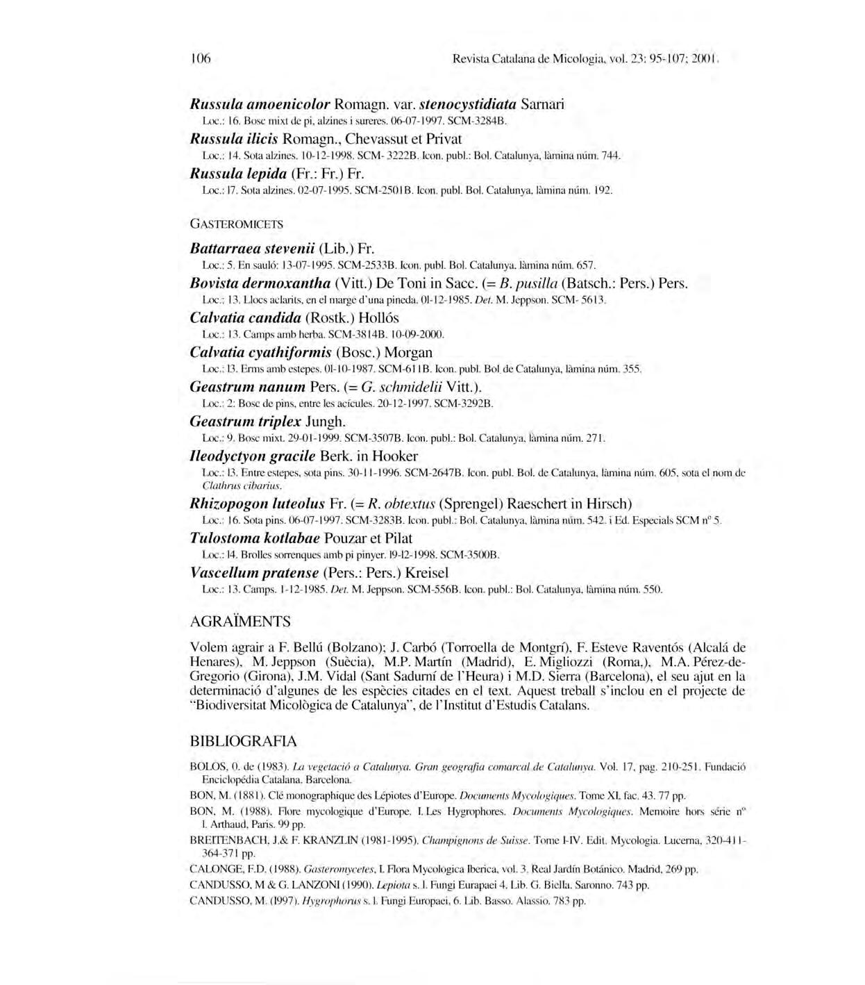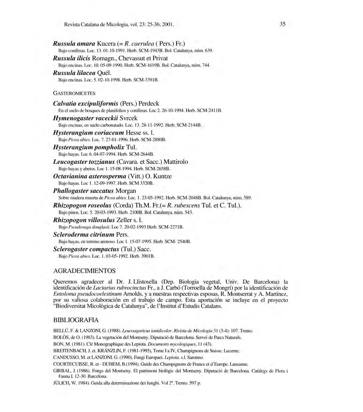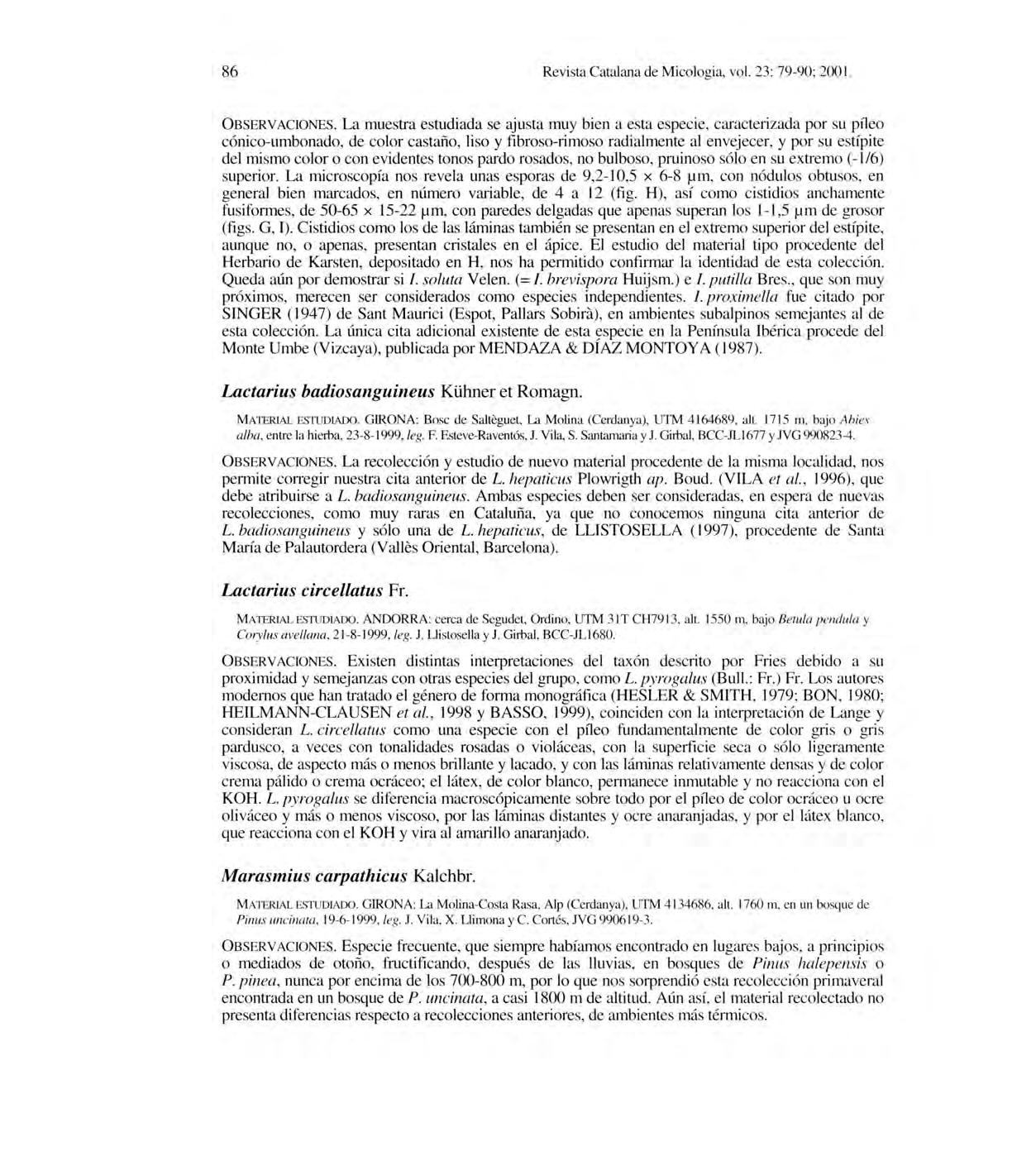 Revista Catalan a deMi cologia , vol.2 3: 1-24; 2001.