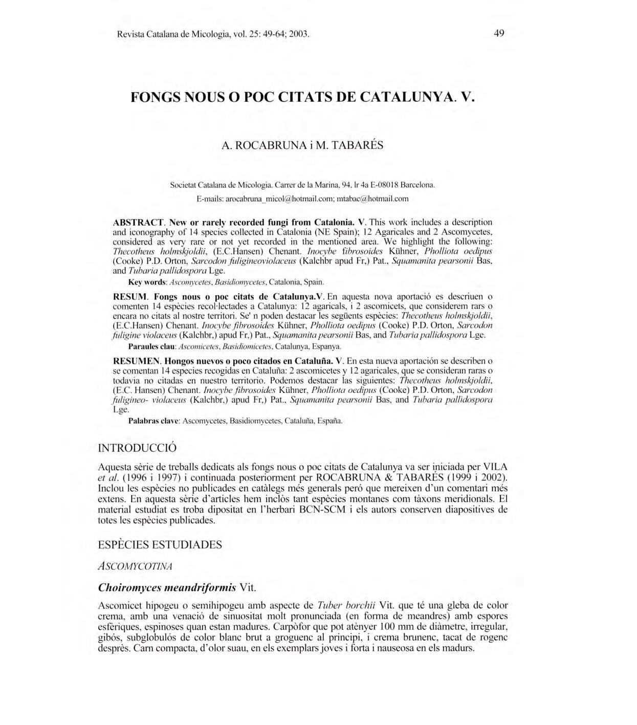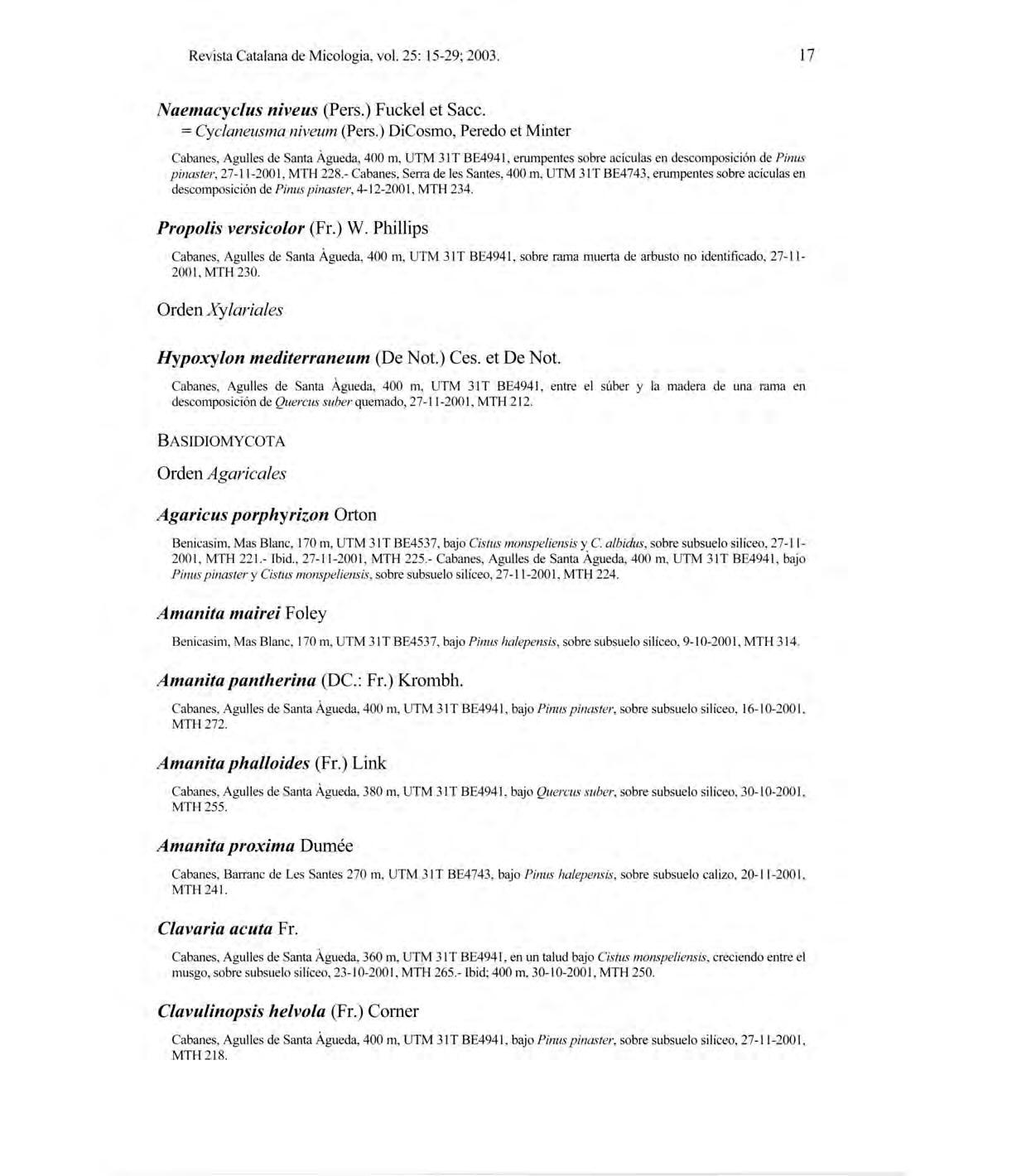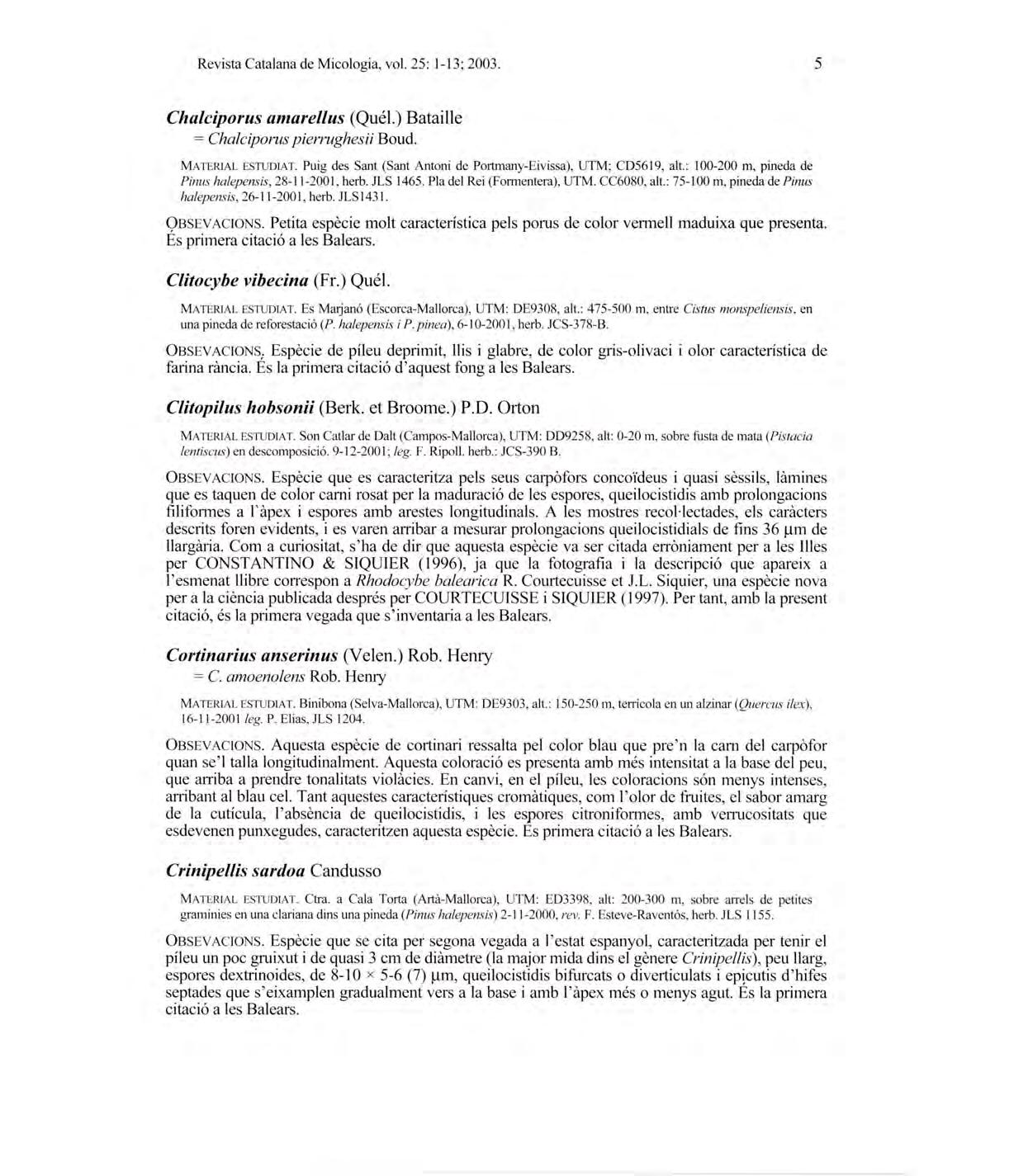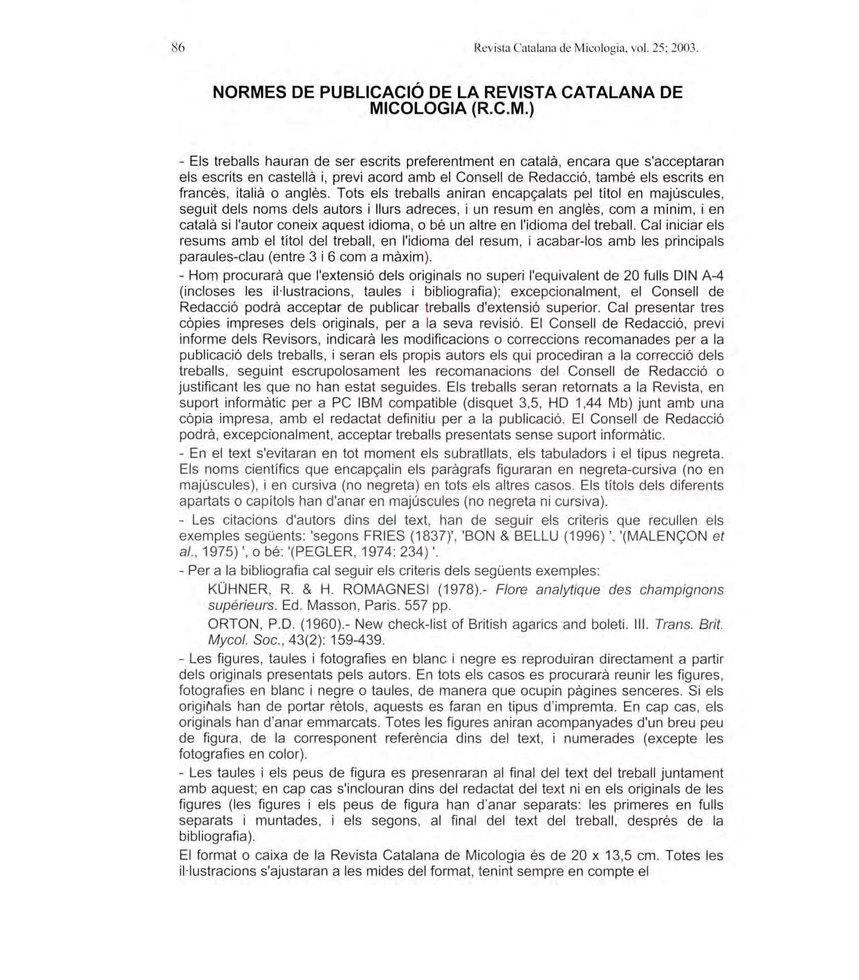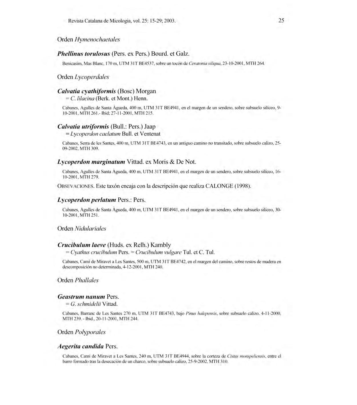 Re vis ta C atalanade Micologia, v ol.25:1-13 ; 2003.
