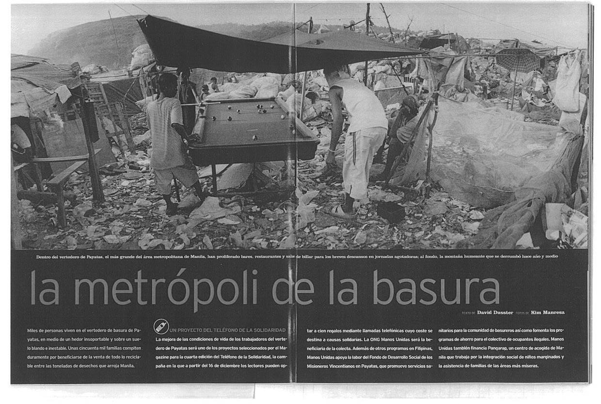 This article is based on photojournalist Kim Manresa’s 25-year personal and professional experience, especially that of the last few years working with reporter David Dusster for La Vanguardia newspaper’s Sunday Magazine. The article focuses on difficulties that journalists face when attempting to produce reports on social realities in the third world-and also the first. Such difficulties include accessing sources of information, publishing in the media, and reaching an international audience.