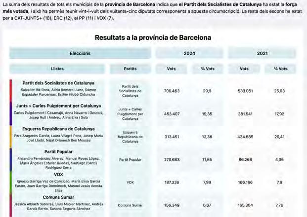 cions al Parlament de Catalunya el 12 de maig de 2024. Addicionalment, els objectius específics són els següents: