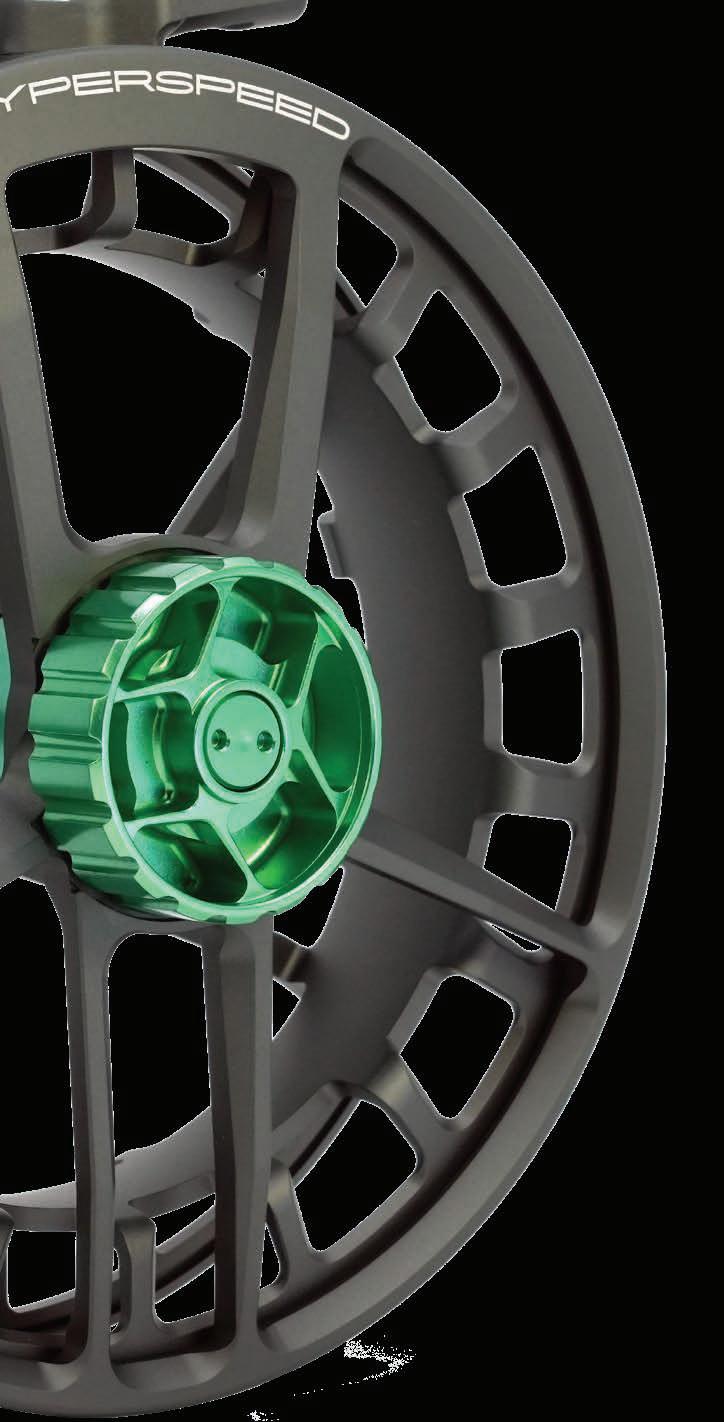 Buckle up. As we’ve said - the performance benchmark for a fly reel is retrieve rate per ounce. There’s no downside to high retrieve rate other than the extra weight. Imagine an 8 weight reel the diameter of a 12, envision gobbling up 14” of line per rotation. Now stop wondering and try to keep up with the Hyperspeed M8. Coming in at less than an ounce heavier than its Litespeed M8 counterpart, this radical design maximizes line pick up unlike any reel we have ever dreamed up. Every inch of the frame and spool has been meticulously CNC machined with even material distribution along critical load paths. Ensuring unrivaled strength, stability, and lightness despite its impressive size. So light you might forget it’s there, but commanding enough to demand attention. Find a new gear with this reel that’s primed to keep pace with even the fastest fish you can find.
