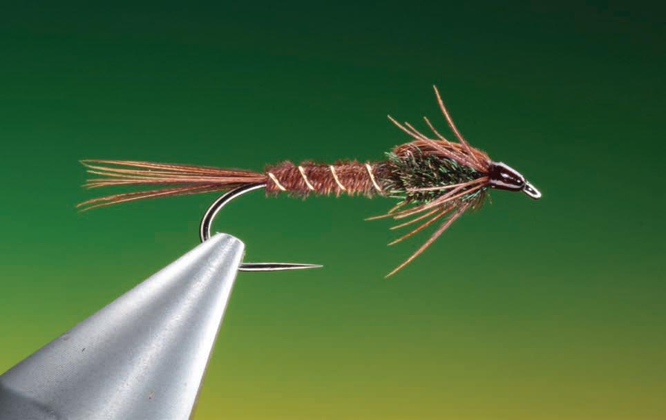 important factor is the fibre length. Normally the best marked feathers with the longest fibre length are found center top of the cock bird centre tail. The Pheasant Tail Nymph is a great model nymph, that meaning, that it has the shape, form and proportions for a generic nymph, you can apply the exact same tying technique used here, just change the colours, materials and size, to imitate and represent many other nymphs found on the trout’s menu.