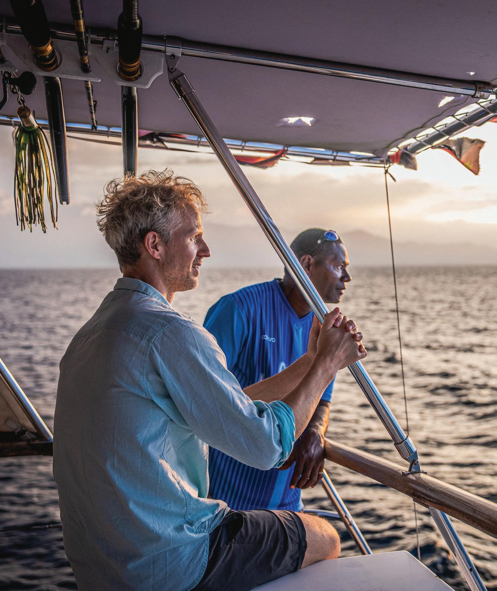 The day is divided into two sessions, with a welcome postlunch siesta in between. Being out at dawn can be intoxicating, but there is something particularly magical about fishing into the evening,