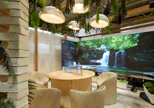 To encourage human interaction and reflect the spirit of the city, tiered seating—inspired by the topography of Mount Royal—beckons visitors to scale the “mountain” for a moment of reprieve, to meet a friend or work colleague, and to experience the space from an elevated vantage point. To transport visitors to “not just another lobby,” Gensler collaborated with Moment Factory to layer into the design a series of multimedia features including a large LED digital wall, spatialized soundscapes and bubbleclustered chandeliers, that inspire feelings of wellness and wonder.