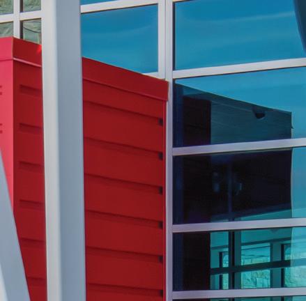 “The metal panels gave us a crisp, smooth surface and edge that o set and contrasted with the randomness of the stone. They also provided an opportunity for additional colour in the façade.”
