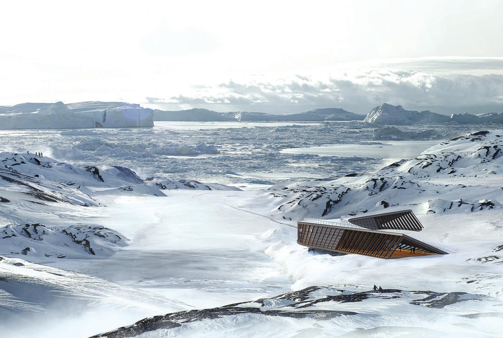 ABOVE Dorte Mandrup Arkitektur’s Ilulissat Icefjord Centre, in Greenland, is expected to be completed by the end of this year. Its steel and timber construction is based on local conditions, ensuring sustainable solutions suited to the context.