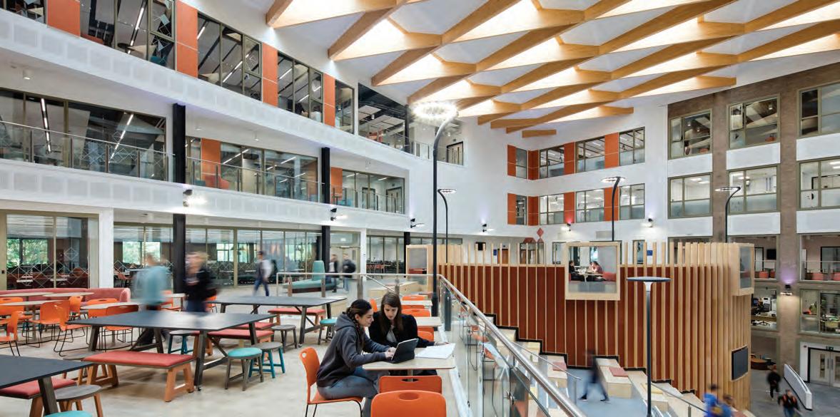 ABOVE UK offices in London, Newcastle, Glasgow, and Inverness have been part of The NORR Group of Companies since 2010. Their recently completed Stephenson Building at Newcastle University refurbishes and adds to an existing modernist structure, and includes CLT floorplates and biomass heating and power. “Decarbonization strategies are further advanced in the UK due to climate policy and early commitments to net-zero emissions,” writes NORR President and CEO Brian Gerstmar. “We can see that the shared knowledge and experience between the UK and Canadian project teams fosters innovation on low carbon and net-zero projects on both sides of the pond.”