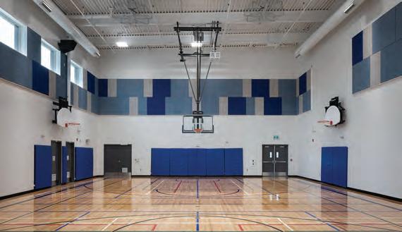 TOP LEFT A moveable wall at École South Point separates a multi-purpose room from the central corridor. TOP RIGHT An informal gathering space on the second floor of Stantec’s École South Point includes the first large-scale living wall in a Manitoba school. BOTTOM MCM Architects’ major renovation of MacKenzie Middle School included a full restoration of the exterior façade.