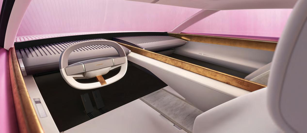 Crash Course At first, Jaguar’s rebranding mission exploded into public consciousness with…nothing. Just a short social media video of models in weird outfits. An actual car eventually did appear: dubbed Type 00 (pronounced Type Zero Zero, not “Double Oh” which would inadvertently connect it to another iconic British brand) and shown in Miami Pink and London Blue colours at Miami Art Week, the all-electric concept is certainly dramatic with a pair of butterfly doors and ‘pantograph’ tailgate; three hand-finished brass lines running the length of the interior; a travertine stone plinth supporting the floating seats and central spine; a tactile wool blend enveloping the two seats, sound bar and flooring. But this too is a tease: it will never see production. Real road cars are yet to come. Yet despite raging debates about how effective this rebrand campaign will be, if nothing else, it’s got us talking.