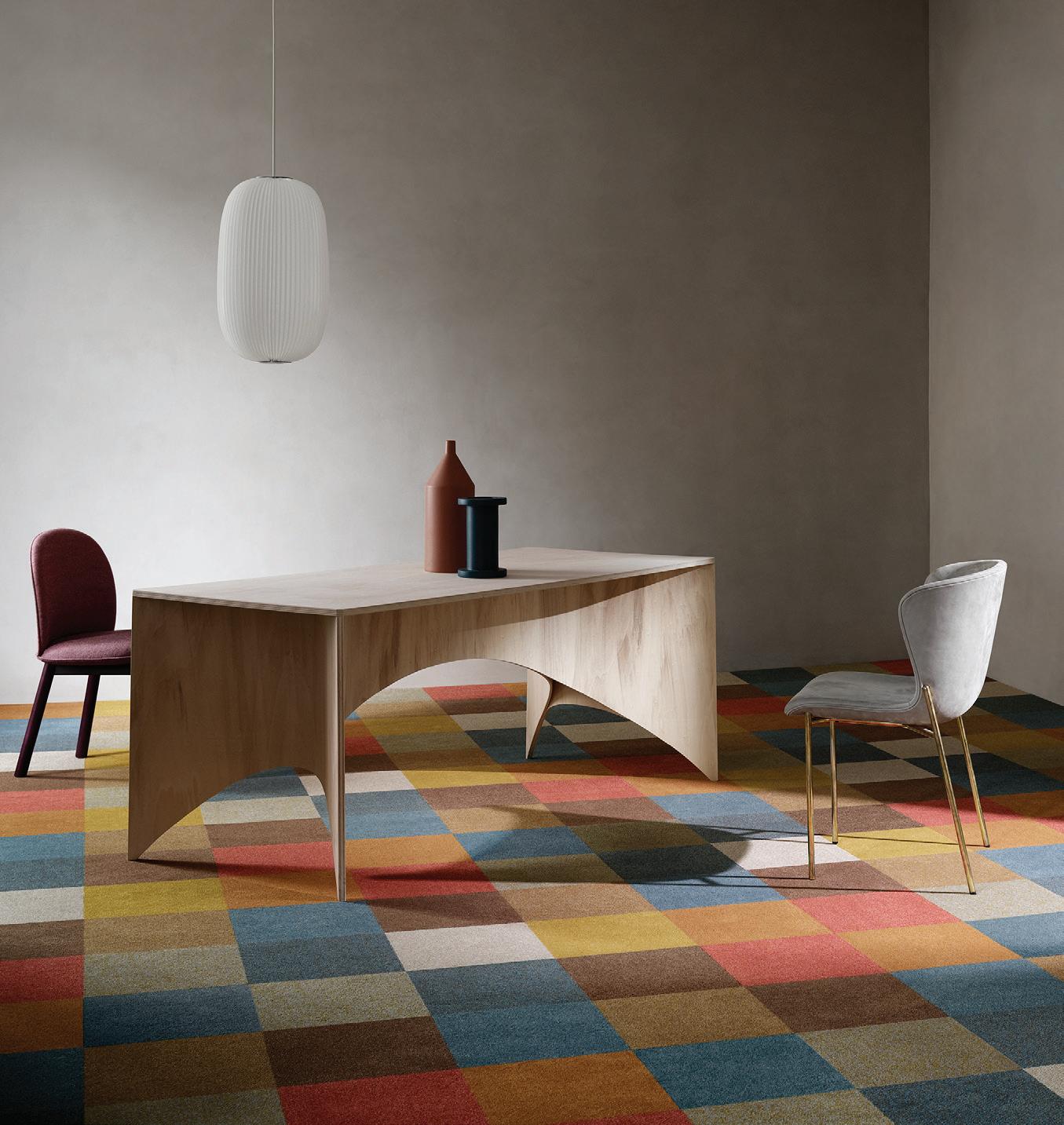 David Oakey took inspiration from the patterns and textures of a mountain landscape near his company’s headquarters to create a new carpet tile collection that brings to life the stone visuals and diversity of veining found within the rocky terrain. The collection includes three plank styles and a square carpet tile all available in shades ranging from slate greys to forest greens, and also expands upon the i2 design innovation, where the tiles are made to blend instead of match. This technique guarantees mergeable dye lots for the life of the install, reducing the need for attic stock and any concerns about selective replacement. Like all Interface products, the four styles in the Beaumont Range are carbon neutral across their full product lifecycle through the manufacturer’s third-party verified Carbon Neutral Floors program. PS