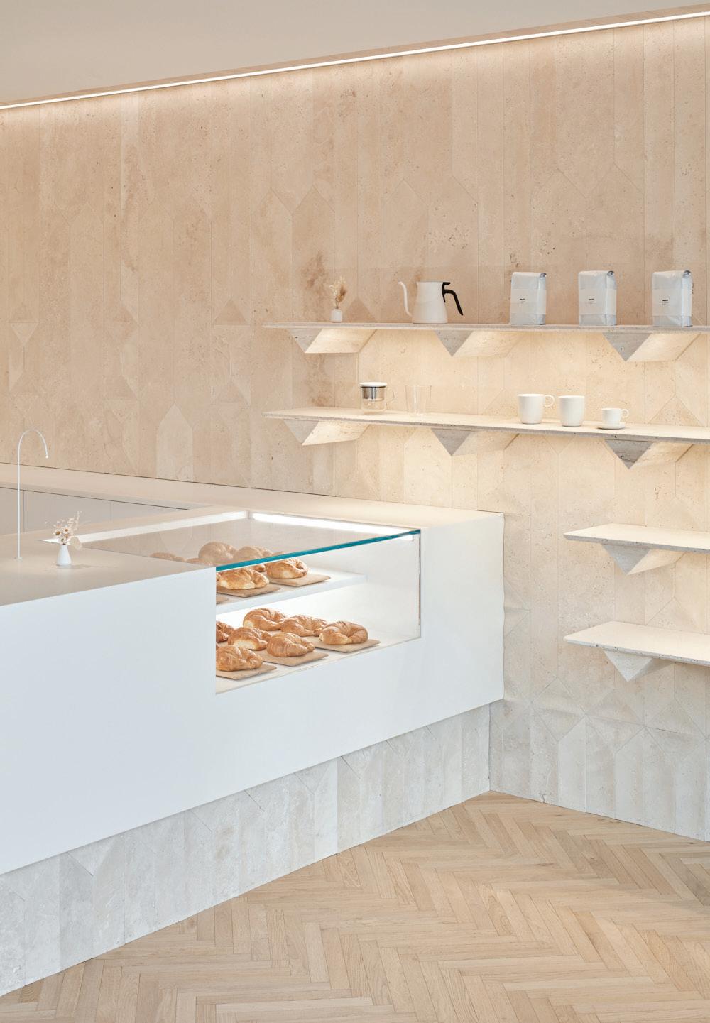 The Australian company paid homage to the Yorkville neighbourhood’s history and architectural character in its new Toronto store to ensure an inviting, domestic atmosphere. Traditional spindly wooden balusters characteristic of the Victorian porches and staircases in nearby houses are used in an unfamiliar, surreal, tightly spaced configuration as wainscoting. This element, along with walls, ceiling and shelves, is painted oxblood red to evoke the dusky warmth of a Victorian interior. Seating and counters coloured to match the walls blend into the background, while pale-beige units with sinks for testing products stand out. The largest basin sits in the centre of the store and doubles as a tea station. Its shared wash basin reinterprets the geometry of Victorian pedestal sinks with their articulated corners, rounded edges and heavy top volume perched on a recessed base. In one wall segment, two tall revolving cylinders showcase an expanded fragrance line; the clearfronted third cylinder is an infusion chamber, the company’s first in Canada, where scents can waft onto customers’ clothing DL
