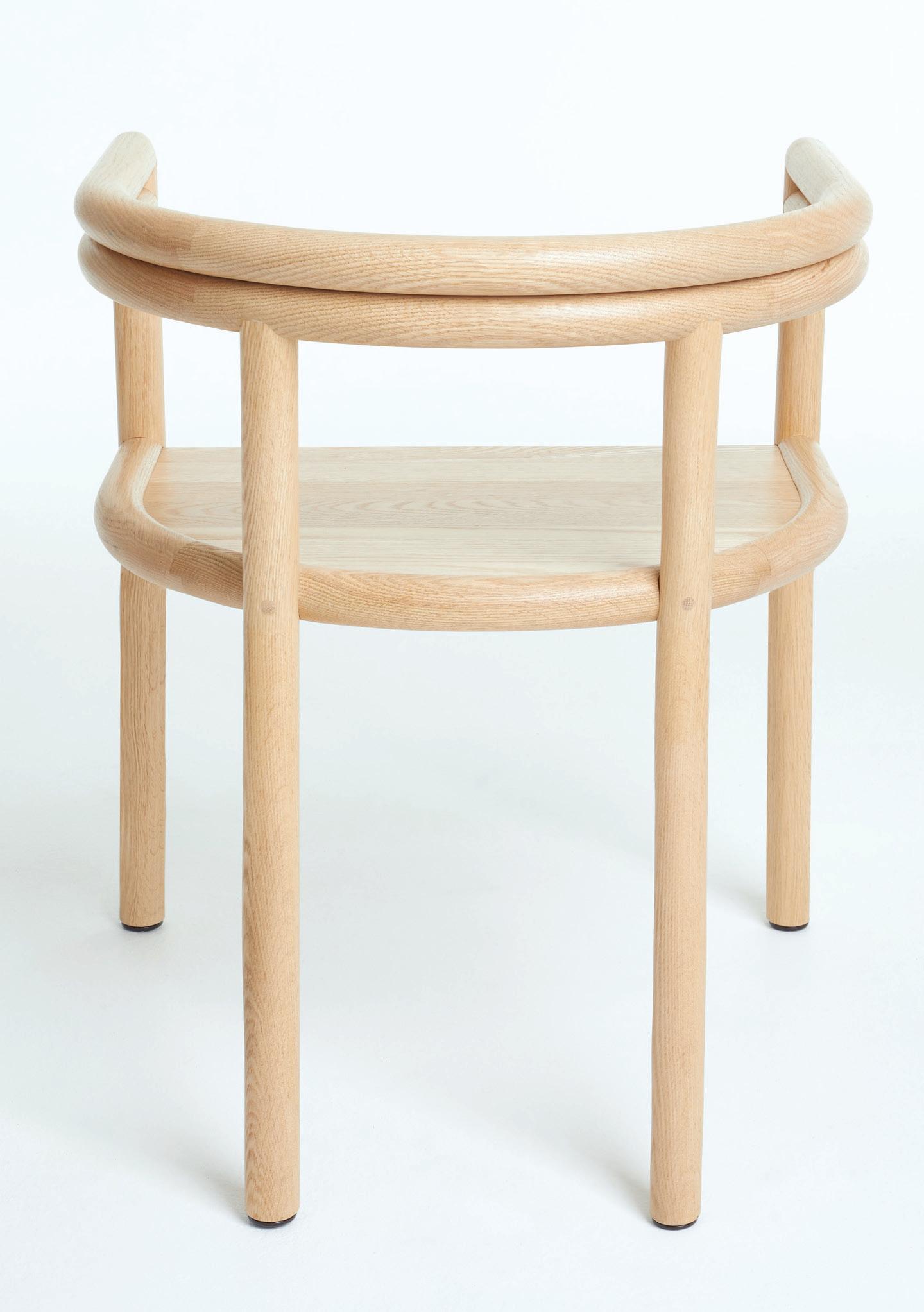 Classic is classic for a reason, and there are few things as classic as a hand-made wood chair. But doing it right is not easy. For this commission, Appareil Atelier in collaboration with l’Autre Atelier dug deep into their research on a wide range of chair types from the 19th century, finding inspiration in the simple yet popular forms. Their goal with the new Elsie line was to develop a new expression of that classic vocabulary by removing all superfluous elements while keeping the essence of the chair, its seat and back. Here, the four chair legs support the seat and continue upward where they become the back and the arms, with the thinness of the seat highlighting the seven bars that make up the chair and whose size is larger than traditionally seen. Made from rectangular pieces machined to give the impression of elegant curves, the chair is a mortise and tenon assembly where each visible component plays a supporting role, giving all aesthetic gestures a structural function. Using solid red oak from Québec forests in its construction is a nod to local craftsmanship and Quebec’s wood products. PS