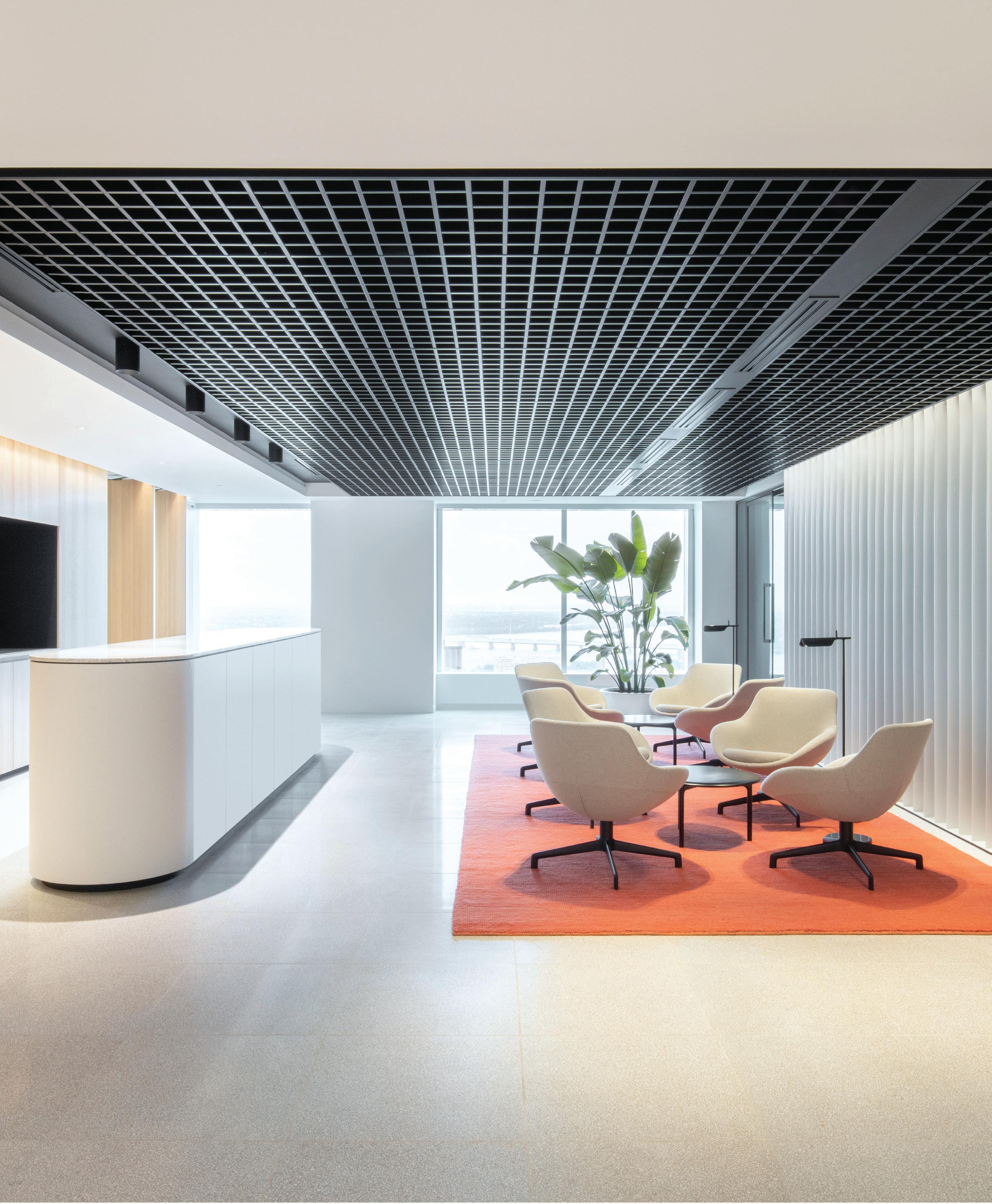 A light-filled reception space surrounding a central preserved core anchors the 39th floor, beyond which guests and executives are treated to multiple entertainment spaces, from lounges to break-out rooms to executive dining rooms that double as conference rooms, all