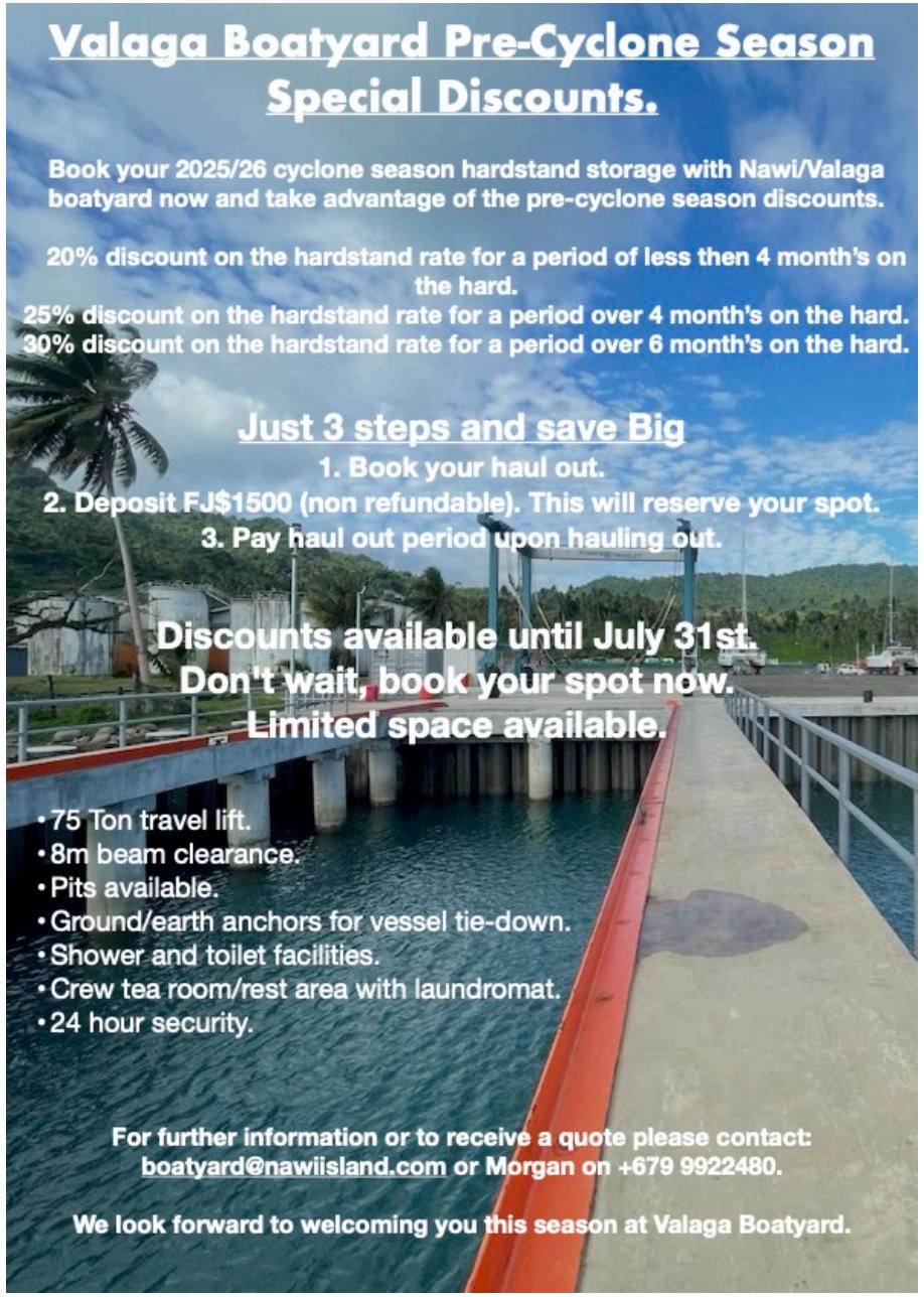 Support fundraising events & follow updates | via the Copra Shed Marina Facebook page Become a member of Savusavu Yacht Club | The best $25 you’ll spend to join a sailing club in Fiji! 100% of fees go to junior sailing