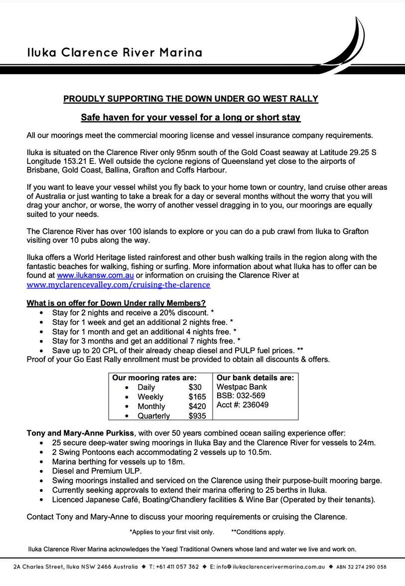Fabulous discounts from our generous marine partner businesses enabling you to save lots of $$. In fact, if you take advantage of all the great deals, you can quickly recoup your rally entry fee including: