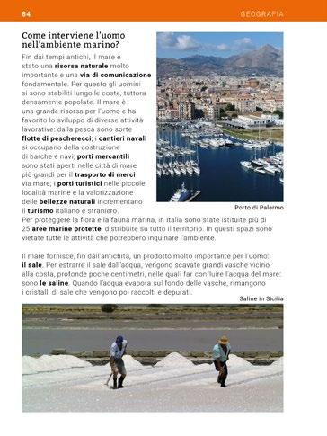 Le montagne, I fiumi e i laghi, La pianura e le colline, già utilizzate nel volume della classe quarta, come guida a una osservazione ordinata. Con le regioni successive tali voci vengono sostituite da Il territorio, riconoscendo agli alunni l’acquisizione personale del metodo di conoscenza dell’ambiente geografico. Nella sezione Il legame dell’uomo con il suo territorio ci si sofferma sulla presentazione delle città capoluogo sottolineando semplici notizie storiche e luoghi interessanti da visitare. La conoscenza delle città capoluogo di provincia è favorita dalla presenza della relativa cartina politica. Per conoscere di più è lo spazio dedicato all’approfondimento di aspetti culturali e di tradizioni popolari ancora in uso.