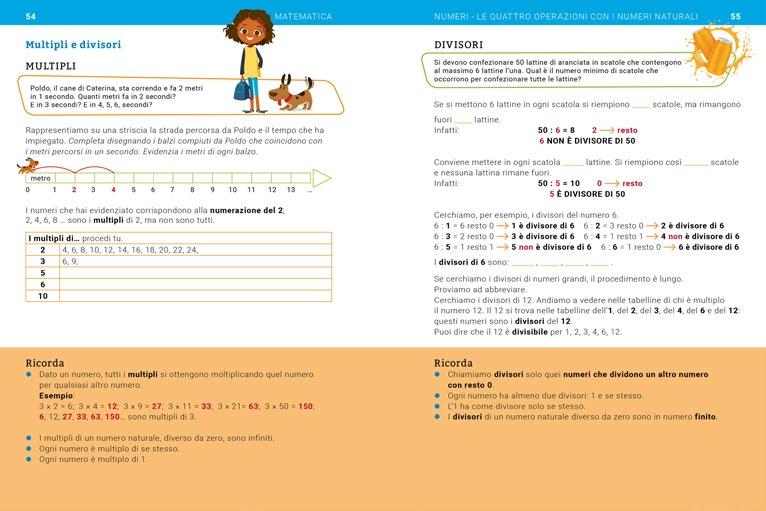 Le pagine di matematica del sussidiario offrono uno strumento di lavoro a supporto del percorso che l’insegnante è chiamato a progettare. La proposta dei contenuti, non vincolante nell’ordine, potrà essere modulata in base alle caratteristiche della propria classe, del contesto in cui ci si trova a operare e in relazione con i contenuti delle altre discipline.