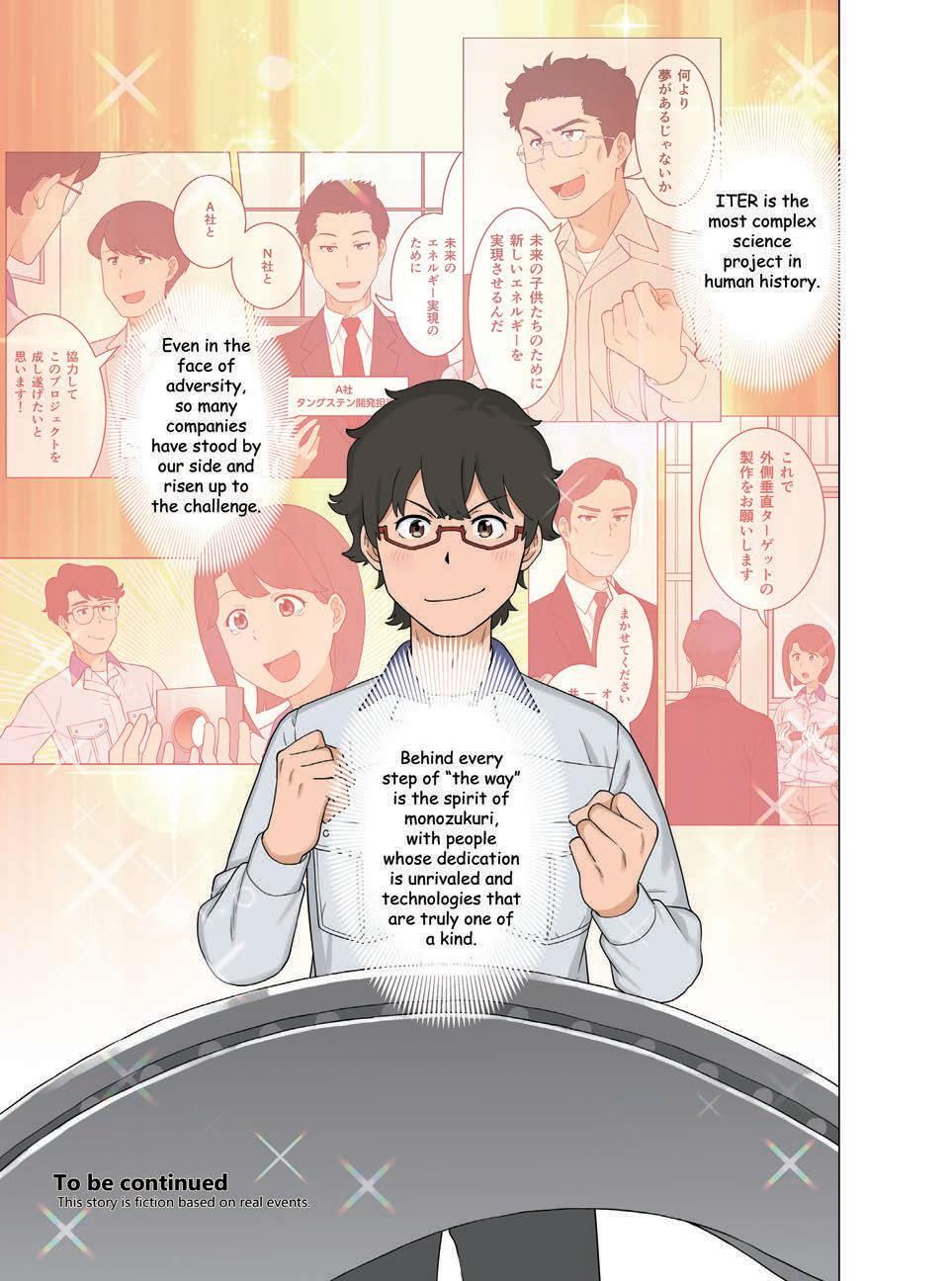 Our protagonist, Taiyo, who met Soléane when he was a student and ever since became fascinated with ITER, has graduated from universit y and is now an administrative staff member at QST. He is taking part in a tour of QST's Naka Fusion Institute as part of his training for new hires, led by QST veteran staff member, Mirai. In the previous issue, we learned about the "gyrotrons," one of the systems used to heat the plasma in ITER. In this issue, we will visit the R&D facility for the "divertor," a system that is essential for maintaining the plasma in ITER.