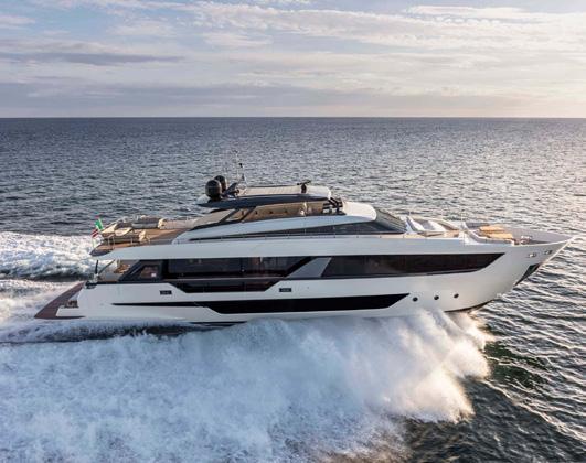 A sleek and sporty model that offers a blistering speed of 35 knots and a shallow draft. She boasts exterior design by Stefano Righini.