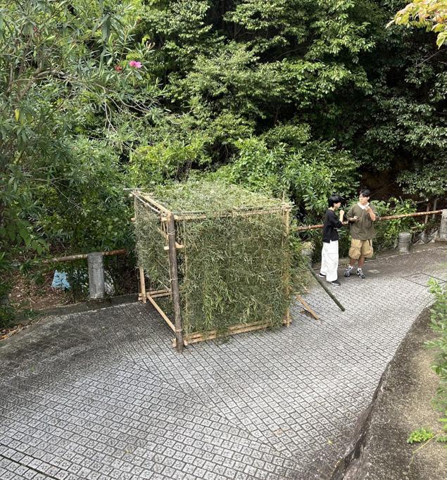 For this five-day design and build exercise, my collegue and I collaborated with architecture students from Kyoto Seika University. This project consisted of limited plywood, ropes, bamboo and other organic materials found around the mountainside of the campus. Without the use of digital tools, along with the language barrier, we relied on hand drawing skills to communicate our design and construction method.